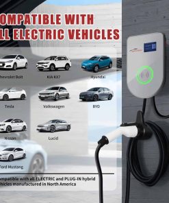 El cargador de vehículos eléctricos de TopAutoGear ofrece una salida máxima de corriente de hasta 50 amperios (11.5KW), con el índice de carga más rápido de 40 millas por hora, tarda 5 horas en cargar completamente un Modelo 3. Requiere un interruptor dual de 60 amperios, 40 amperios y toma NEMA 14-50 de nivel 2. Cable grueso de 25 pies que te permite cargar sobre la marcha con facilidad. El controlador inteligentemente diseñado incluye un soporte de montaje en pared para mayor comodidad. Compatible con un enchufe estándar NEMA14-50 y una interfaz SAE J1772, compatible con una amplia gama de modelos de vehículos en los Estados Unidos (incluye adaptadores para Tesla). Ofrecemos una compatibilidad integral para garantizar una conexión sin problemas en tu experiencia de carga. Nuestra garantía de calidad de cinco años refleja nuestra total confianza en la calidad del producto. El cargador cuenta con una clasificación de protección IP67 y ha obtenido certificaciones UL y FCC, con múltiples protecciones de seguridad como resistencia al fuego, protección contra sobrecorriente, sobretensión y sobrecalentamiento.