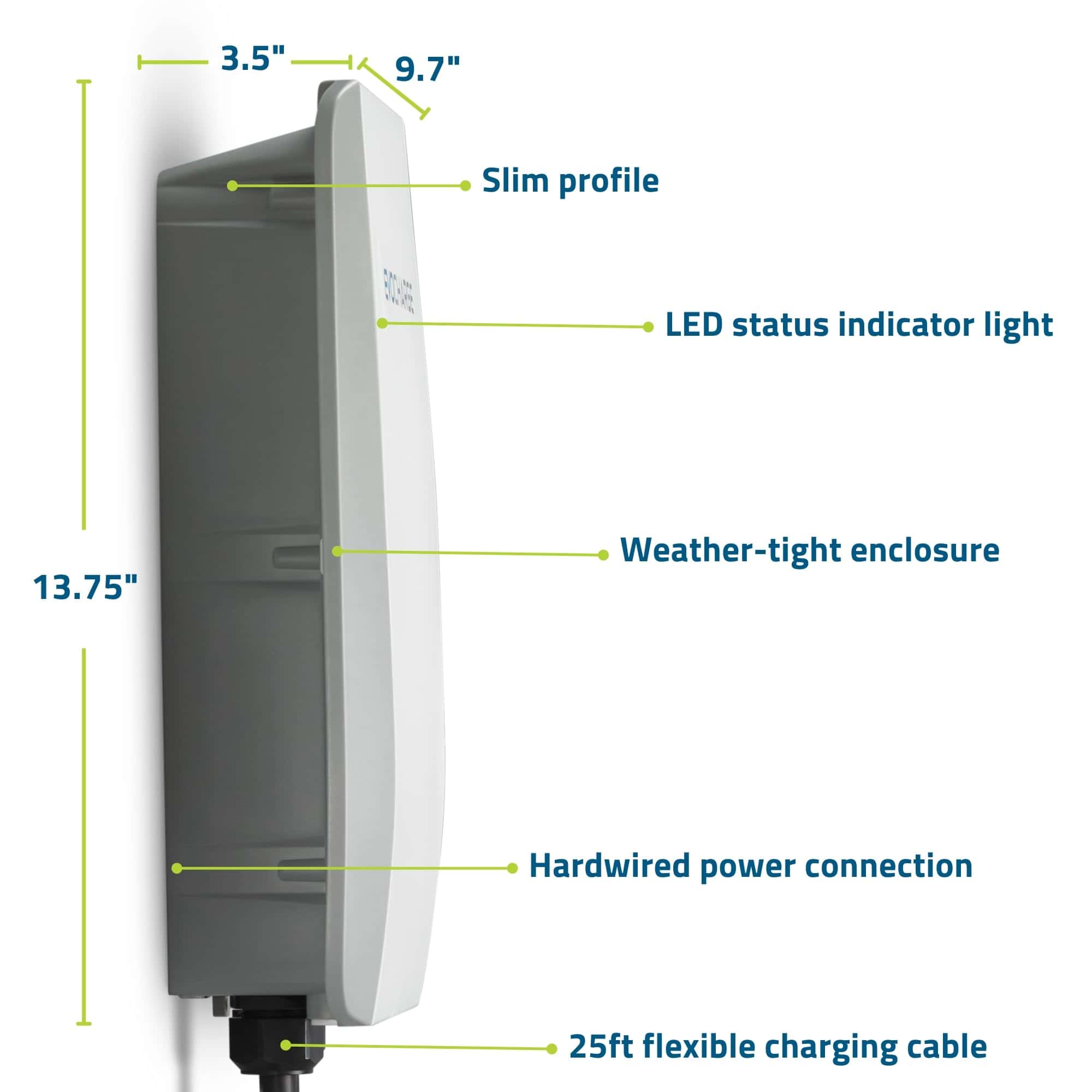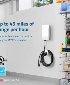 1. Carga en Casa Simplificada – Obtenga una carga más rápida en casa con una estación de carga EV nivel 2 de 50A con conexión dura que funciona con vehículos eléctricos que utilizan el conector J1772.