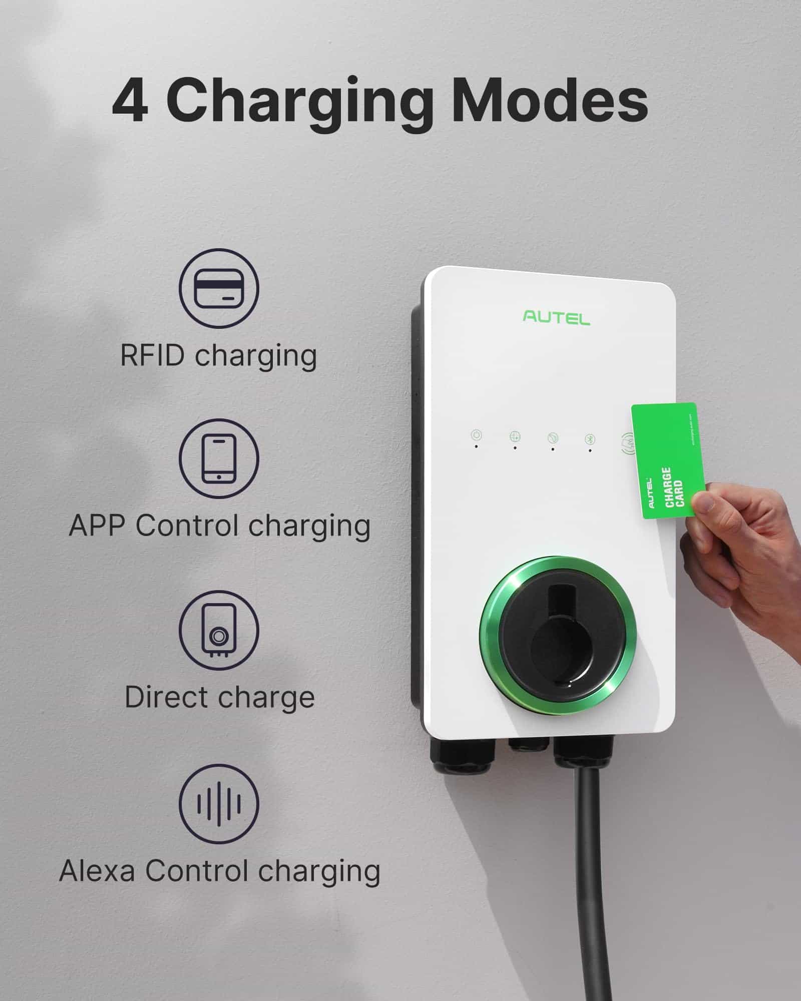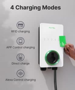 Faster Charging Con una carga de 12kW de hasta 50A, la velocidad nunca será un problema. Agregue 37 millas por hora de carga. No pierdas tiempo esperando a que tu EV se cargue por completo con cargadores más lentos. Un cable duradero de 25 pies actualizado es flexible sin importar el frío de la temporada, para que puedas cargar con confianza incluso en las temperaturas más frías (-40 ). Certificado CSA y Elegible Tipo 4 NEMA para el programa de reembolso federal. Pruebas exhaustivas para garantizar la elegibilidad para el programa de reembolso local y federal. Diseñado para instalación en interiores o exteriores. Clasificación NEMA 4 para protección contra nieve, lluvia, granizo y aguanieve, y probado para garantizar su protección contra sobrecorriente y sobretensión. Tu cargador de nivel 2 funcionará mejor y durará más, ahorrándote dinero a largo plazo. Control Inteligente de APP Usa la APP Autel Charge para controlar tu cargador y gestionar los tiempos de carga, programar la carga mientras estás fuera y optimizar tu carga para aprovechar la electricidad en horario valle. Equipado con Bluetooth, conectividad Wi-Fi y acceso Ethernet aseguran que tus actualizaciones automáticas de firmware remoto OTA te mantengan conectado en los momentos que lo necesitas. Garantía de 12 meses y Soporte 24/7 El MaxiCharger es fácil de instalar para cualquier electricista. Una garantía de 12 meses, actualizaciones automáticas de la APP y soporte durante todo el día por parte del equipo de servicio de Autel significa que nunca tendrás que preocuparte por la calidad y el servicio.