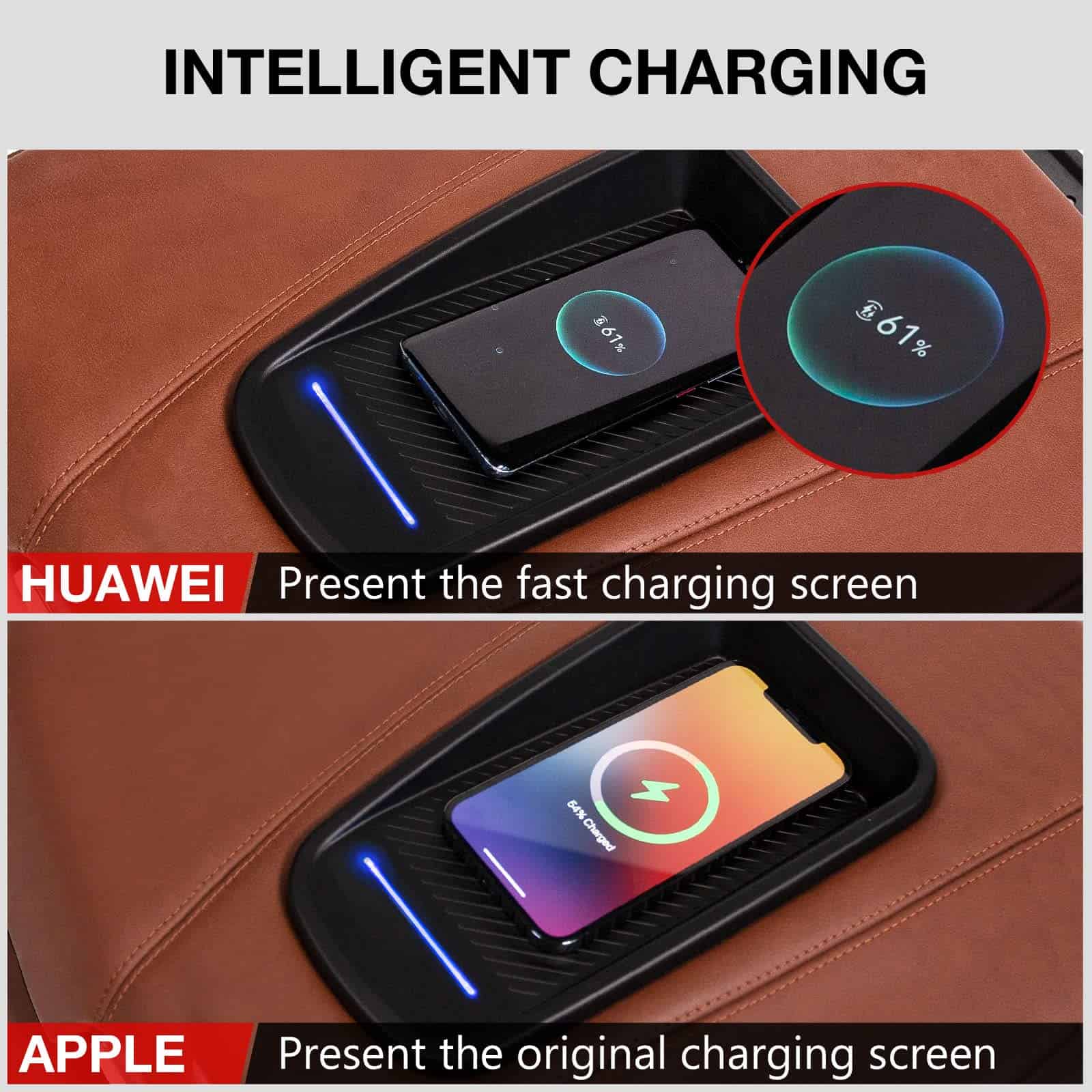 Compatibilidad: El cargador inalámbrico de consola central es compatible con Cadillac Escalade 2015 2016 2017 2018 2019 2020. Está diseñado según el vehículo original y se ajusta perfectamente a su cuerpo. Con certificación CE, certificación RoHS y certificación FCC. Función y seguridad: El cargador inalámbrico inteligente de quinta generación para automóviles comenzará a cargarse automáticamente cuando se coloque un teléfono celular con función de carga inalámbrica en la consola central. Y el teléfono con funda también se puede cargar. Cargador de automóvil inalámbrico rápido de 15 W, ajusta automáticamente la corriente, reduce automáticamente la corriente de transmisión cuando está cerca de la carga completa y se detiene automáticamente cuando está completamente cargado. Tapete de carga inalámbrica con luz ambiente: la luz brillante que respira indica una carga normal, el parpadeo rápido indica una carga anormal, la falta de parpadeo indica que no funciona. A diferencia de otros cargadores inalámbricos, no necesita preocuparse por si hay monedas, tarjetas IC, tarjetas bancarias y otros metales entre el teléfono y el cargador, lo que lo hace más seguro. Instalación fácil: La bandeja de carga inalámbrica puede reemplazar la bandeja de automóvil original, no afecta el uso de USB y encendedor de cigarrillos. Herramientas de instalación gratuitas. Almohadilla de silicona antideslizante gratuita para proteger la cámara del teléfono. Un arnés con un fusible también se proporciona, que es más seguro de usar. Accesorios esenciales para Cadillac Escalade: Excelentes accesorios para su Cadillac Escalade. El cargador inalámbrico en buenas condiciones se empaquetará bien y se transportará rápidamente a sus manos, ofreciéndole un servicio satisfactorio.