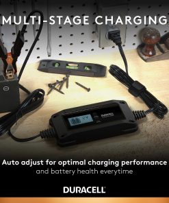 Alargue la vida de su batería con una carga y mantenimiento adecuados. El Cargador/Mantenedor Duracell de 4 Amperios puede llevar baterías descargadas de muertas a encendidas en solo 2 horas. El protocolo de carga de varias etapas del Cargador/Mantenedor garantiza una carga óptima en todos los tipos de baterías de vehículos de 6V, 12V e Ión de Litio, y cuenta con un modo de mantenimiento que es ideal para mantener las baterías almacenadas cargadas entre usos. El cargador/mantenedor de 4 Amperios cuenta con una pantalla LCD retroiluminada para la mejor experiencia de usuario, y está clasificado IP65 para una construcción resistente a la intemperie. El cargador incluye pinzas de cocodrilo para cargar periódicamente, así como terminales de anillo para la conexión semi-permanente de la batería (ideal para mantenimiento). Cambiar entre las pinzas y los anillos es seguro y sencillo gracias al sistema de cable de conexión rápida del cargador.