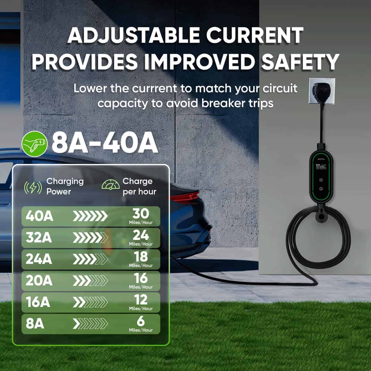 5. COMPATIBILIDAD CON VEHÍCULOS ELÉCTRICOS J1772: Nuestro cargador de vehículo eléctrico Nivel 2 es compatible con todos los cargadores J1772, incluidos los modelos Tesla con un adaptador, ofreciendo un funcionamiento perfecto en múltiples marcas de vehículos eléctricos.