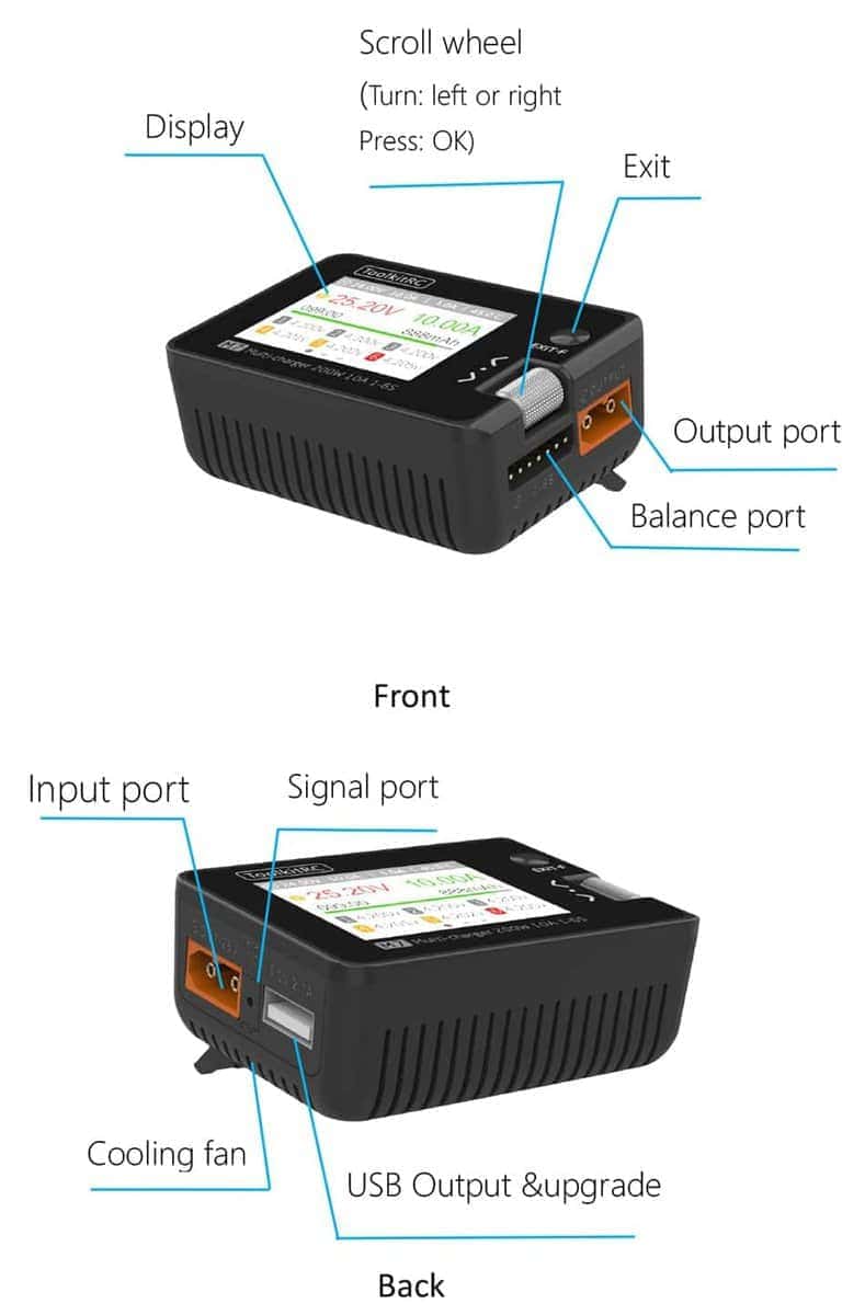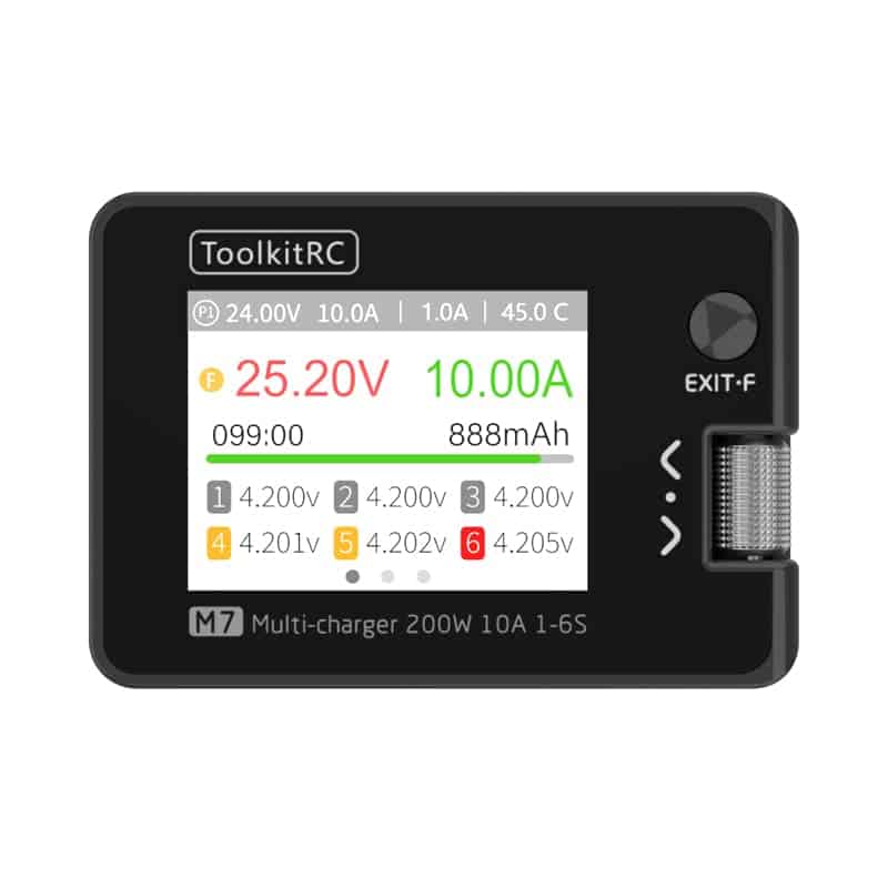 Tiempo de corte por sobrecorriente: <5ms Embalaje incluido: 1X Cargador ToolkitRC M7