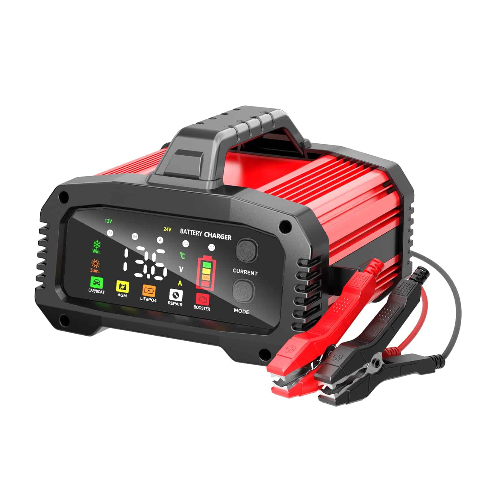 1. 25A Adecuado Para LiFePO4 Cargador de Batería de Plomo-Ácido 12V 25Amp, 24V 15Amp, cargador de batería con corriente ajustable de 5 niveles 2A/8A/20A/25A/AUTO que puede satisfacer sus diferentes necesidades. Además, cargue o repare todas las baterías de automóvil, Lifepo4, marinas y de ciclo profundo de 12V y 24V, incluidas AGM, GEL, SLA, Flooded en automóviles, camiones, SUV, motocicletas, cortadoras de césped, botes, marinos, etc.