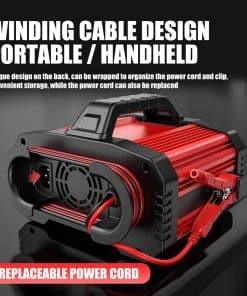 4. Gran Carga Visualizada LCD Digital La pantalla LCD extragrande no solo es clara para ver bajo la luz solar, sino que también muestra el estado de carga y de la batería; voltaje y corriente de carga, temperatura interior, porcentaje de carga, modo verano, modo invierno, etc. El cable de carga alargado de 6.65 pies es más conveniente de usar. Al mismo tiempo, hay diseños de clip en ambos lados del cargador, que se pueden plegar para un fácil almacenamiento y uso, lo que hace que su cargador ya no sea un caos.