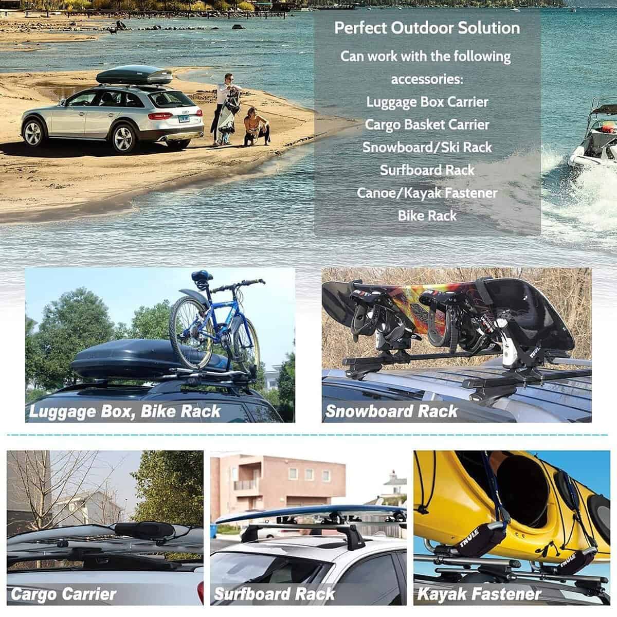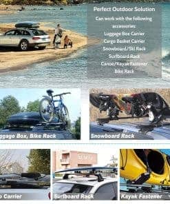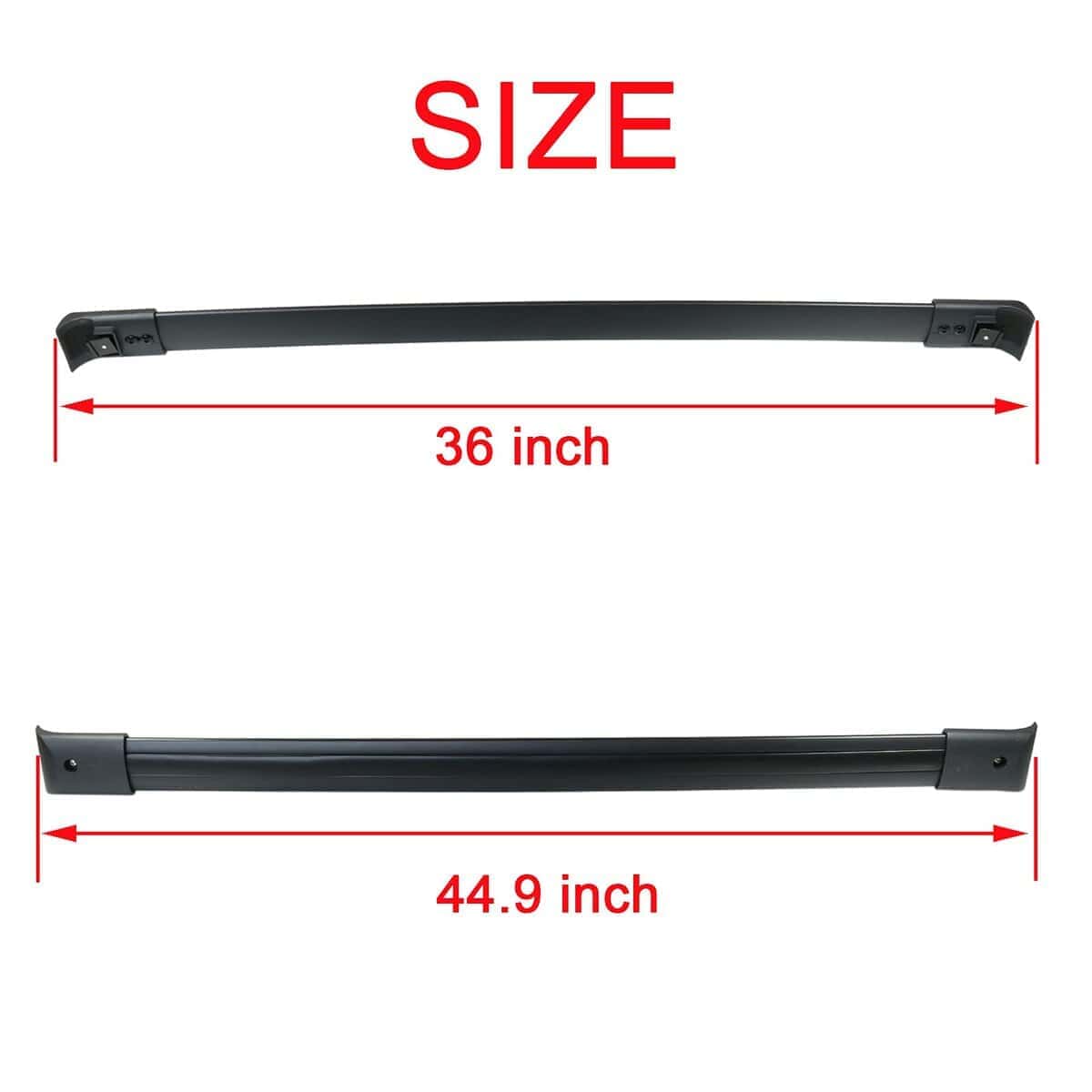 Una carga máxima de hasta 165 lbs. Solución perfecta para transportar equipaje/carga/tablas de snowboard/esquís/bicicletas/kayaks en el techo. Material resistente de alta resistencia de aleación de aluminio de grado marino soporta equipaje, ligero y duradero. Superficie con recubrimiento en polvo negro, resistente al agua y a la corrosión, peso de escalera o carga de hasta 165 lbs. Fácil instalación sin necesidad de herramientas. Diseño aerodinámico que reduce eficientemente la resistencia al viento y al ruido. El diseño de fijación resistente garantiza que esté firmemente fijado a los rieles laterales existentes. Duradero y de larga duración, el período de servicio al cliente es de 1 año. Nota: Por favor, revisa las imágenes de muestra y el OEM antes de comprar.