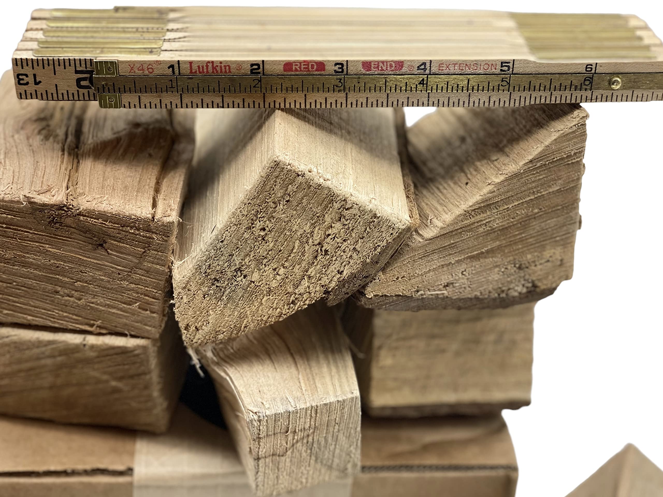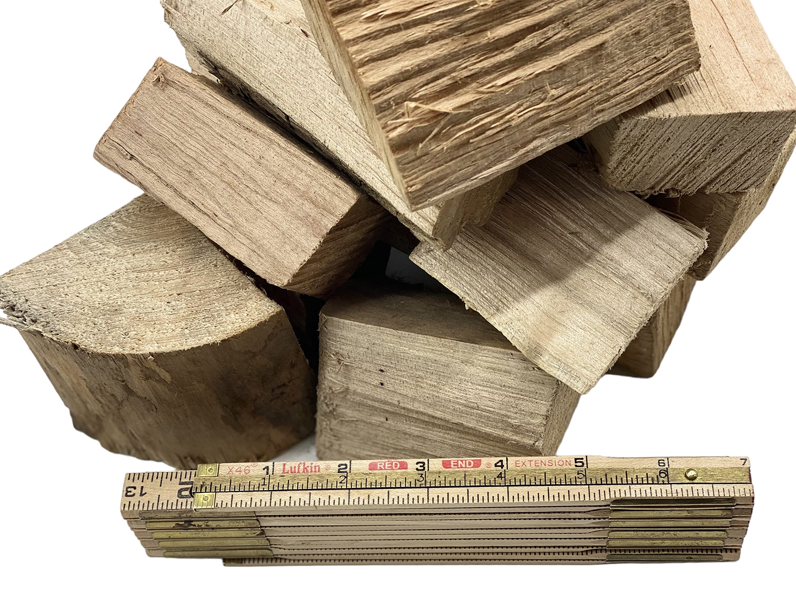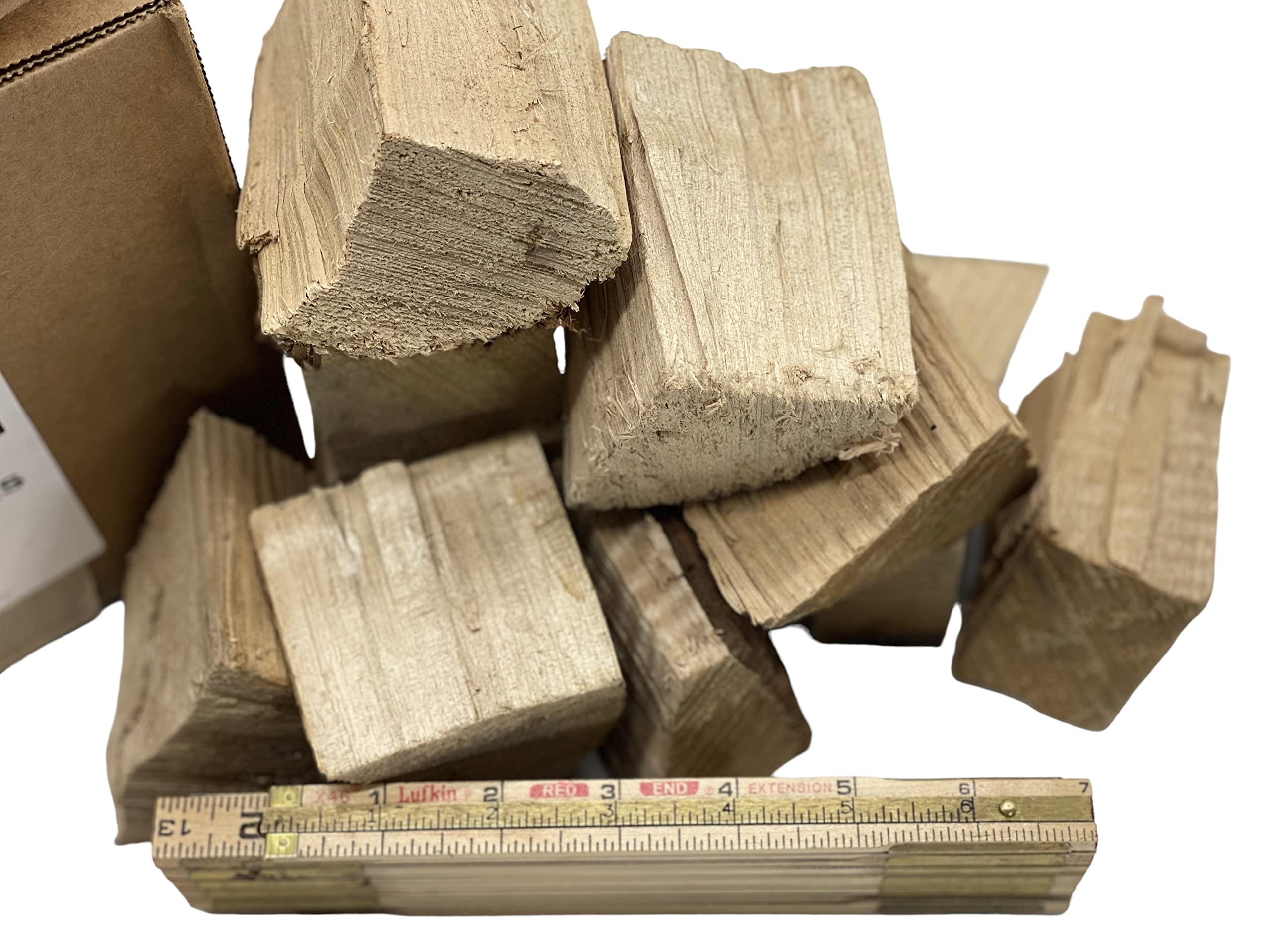 4. Cada caja de 15 x 8 x 7 pulgadas contiene de 8 a 12 libras de trozos de madera – el peso depende del tipo/especie de madera.