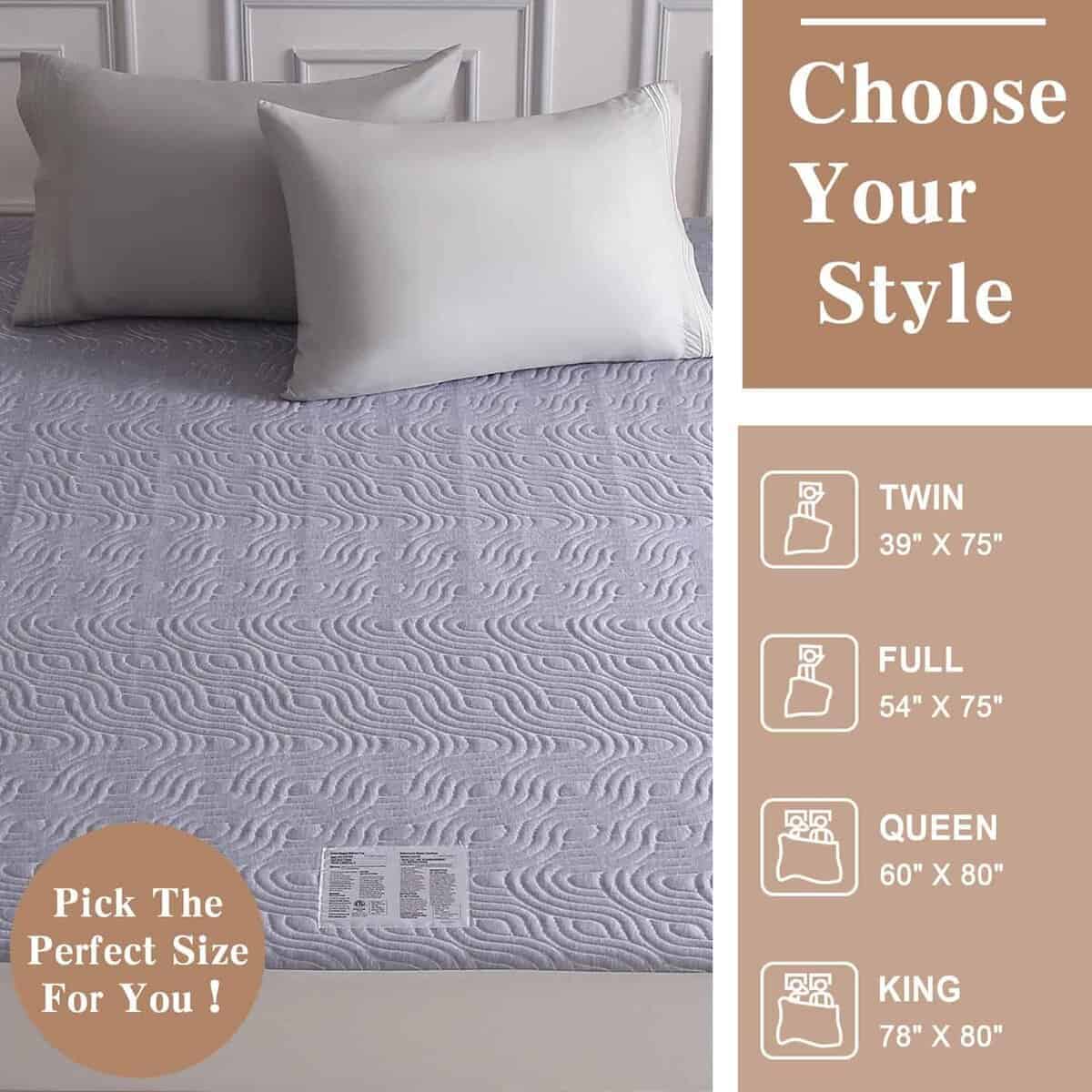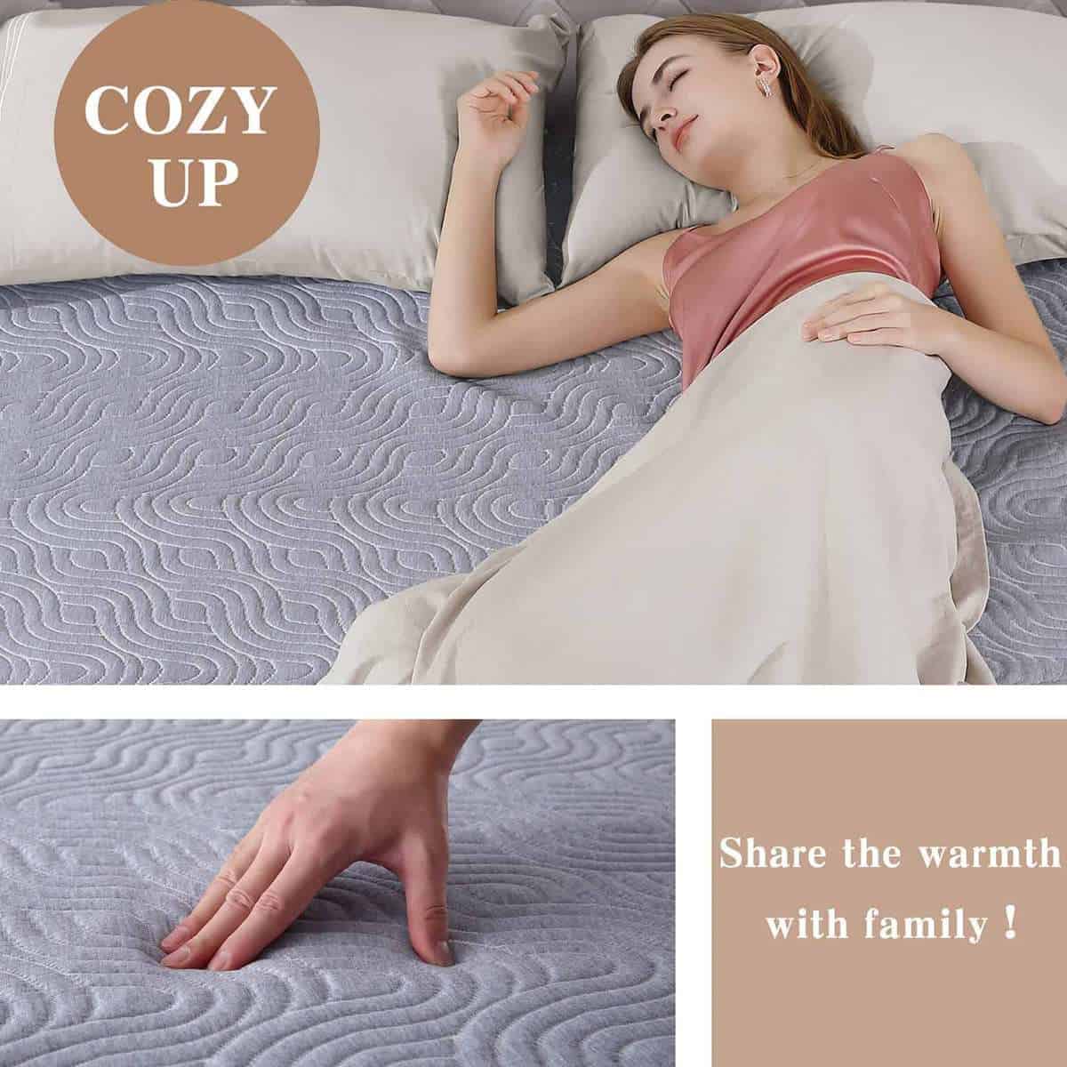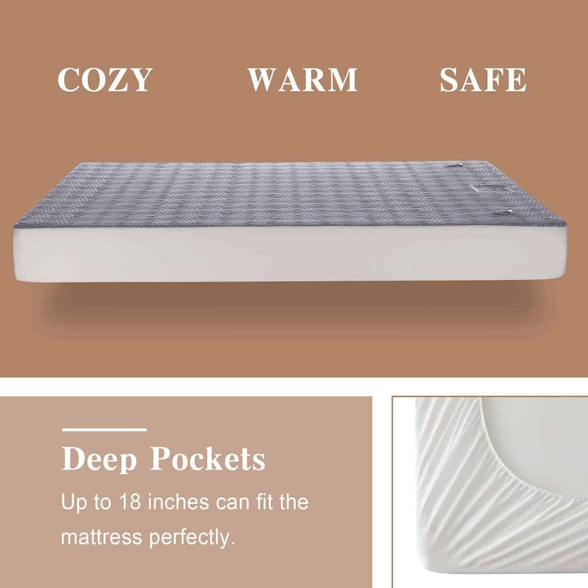 3. Colocación flexible: los bolsillos profundos de hasta 18 pulgadas brindan un ajuste perfecto para su colchón, y el faldón de alrededor con elástico fuerte asegura que se mantenga en su lugar de forma segura. Con un cable de alimentación de 10 pies de largo, el controlador se puede colocar en cualquier lugar de su cama para mayor comodidad.