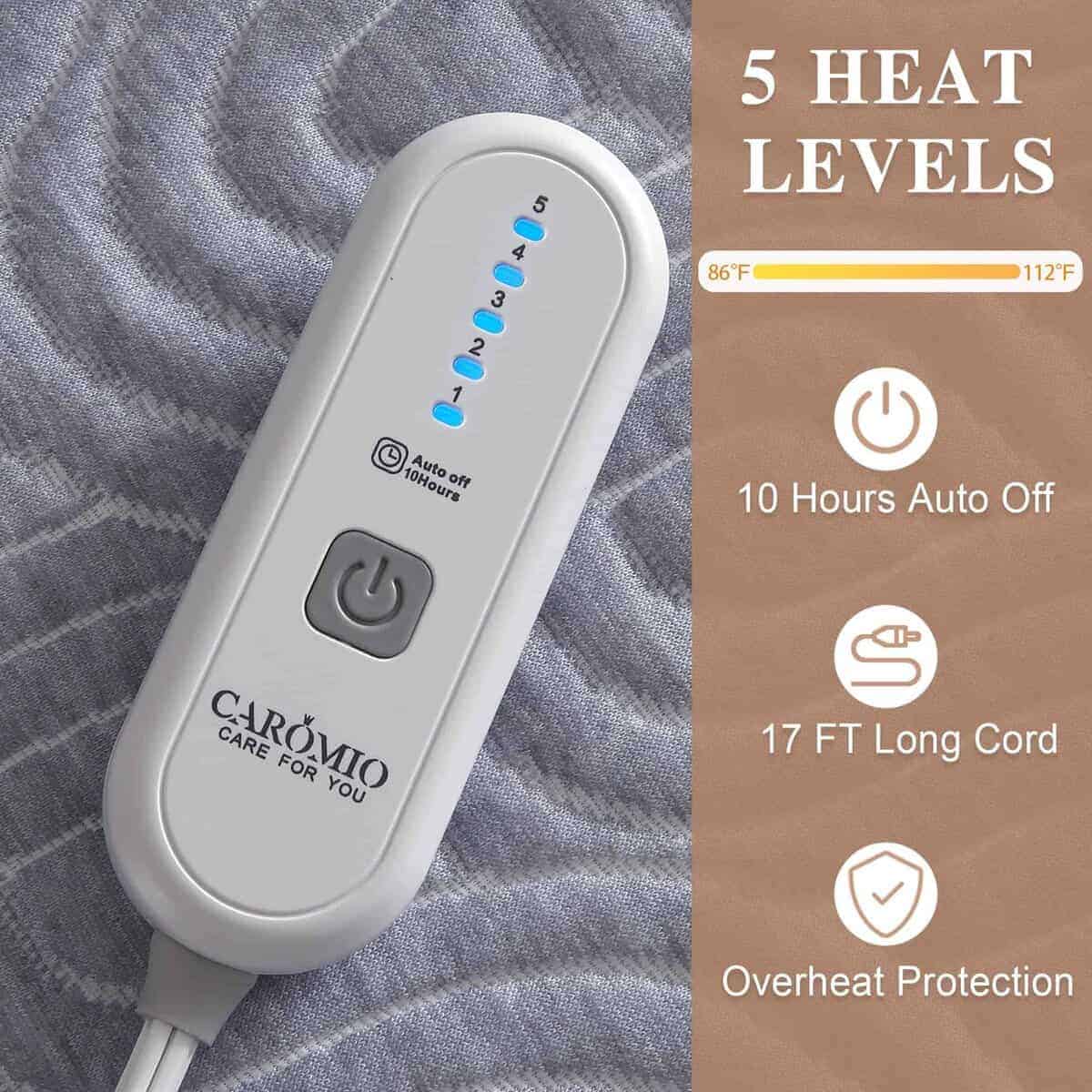 2. Calor instantáneo: personalice su comodidad con la colchoneta eléctrica de tamaño completo, lo que le permite elegir entre 5 niveles de calor diferentes (90-112 ). Los cables de calefacción distribuidos uniformemente proporcionan un calentamiento rápido y eficiente, para que pueda sentirse cálido en solo 20 minutos.
