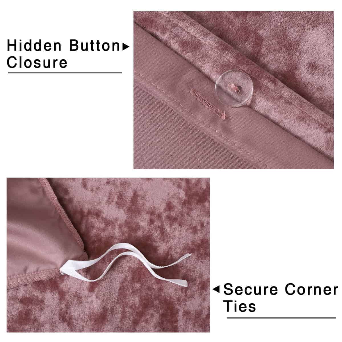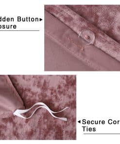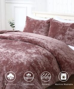 Características: 1. Apariencia lujosa: Telas de terciopelo especialmente elaboradas muestran múltiples colores bajo diferentes ángulos e intensidades de luz, como si la luz fluyente exudara tonos y matices encantadores, presentando diferentes festines visuales y sorprendiéndote en cada momento. 2. Toque acogedor: El lado frontal del juego de funda de edredón está hecho de 100% terciopelo delicado, que presenta un toque suave y aterciopelado. La parte trasera utiliza microfibra cepillada 100% para mayor comodidad. Esta cubierta de cama acogedora y soñadora es adecuada para todo el año. 3. Diseño protector: Esta funda de edredón tiene 8 lazos en las esquinas para asegurar tu edredón en su lugar, los cierres de botón ofrecen una apariencia elegante y cuentan con una durabilidad fuerte para usar durante más años que los cierres de cremallera que suelen atascarse fácilmente. 4. Lo que obtienes: Incluye 1 funda de edredón (104×90 pulgadas) y 2 fundas de almohada (20×36 pulgadas), es un regalo ideal para tus seres queridos en ocasiones especiales: para Aniversarios, Cumpleaños, Día de Acción de Gracias, Día de San Valentín, Día de la Madre, Día del Padre y Navidad. 5. Cuidado fácil: Lavar a máquina por separado en agua fría, ciclo suave. No usar lejía. Secar en secadora a baja temperatura o secar al aire (puedes seguir las instrucciones de cuidado). La funda del edredón permanece como nueva después de múltiples ciclos de lavado.