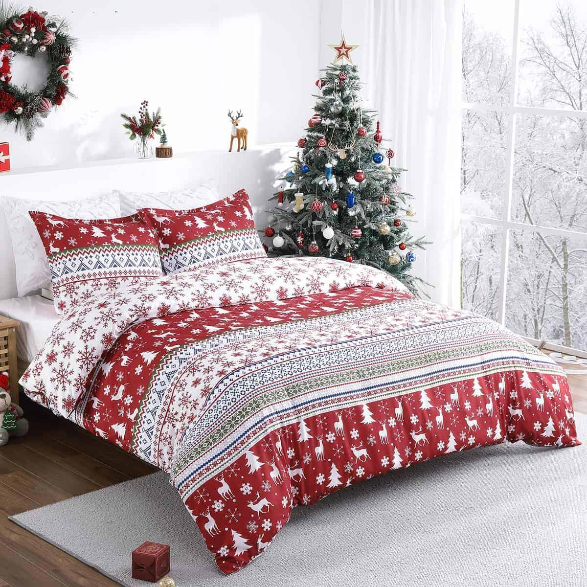 CAROMIO Juego de Funda de Edredón Navideño Tamaño King –