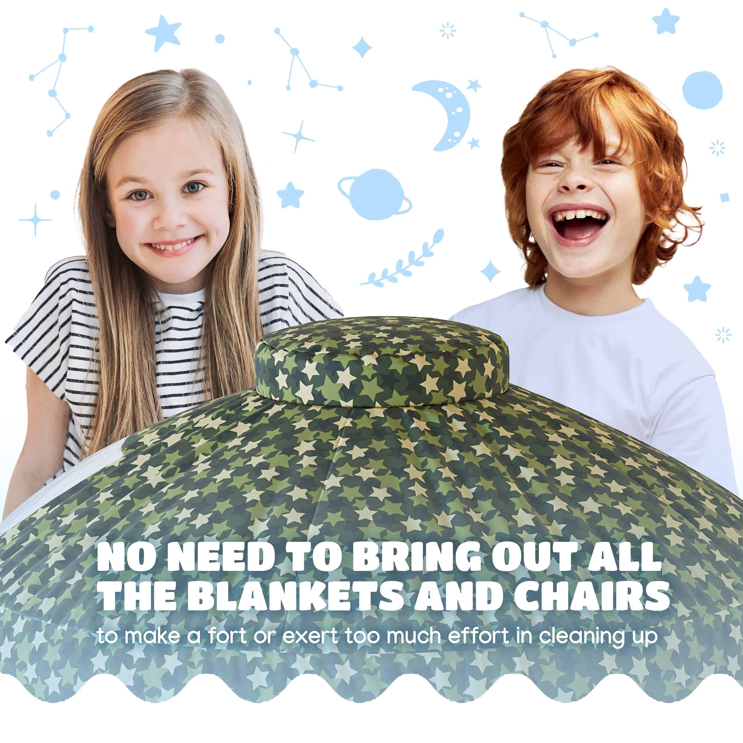 3. DISEÑO ATRACTIVO DE CAMUFLAJE – A diferencia de otras carpas de aire simples, la carpa de aire Skywin está diseñada con un estampado DE CAMUFLAJE que atrae el gusto de los niños. Perfecto para el juego de simulación.