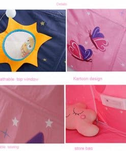 La carpa de cama mide 140cm de largo, 100cm de ancho y 80cm de alto. Peso de 1.7kg. Viene con una bolsa de transporte portátil. Los niños adoran esta carpa con la imaginación de una aventura bajo las estrellas, se sienten seguros en su propio mundo de fantasía. Perfecto para la hora de la siesta, la hora de dormir y tiempo de juego.