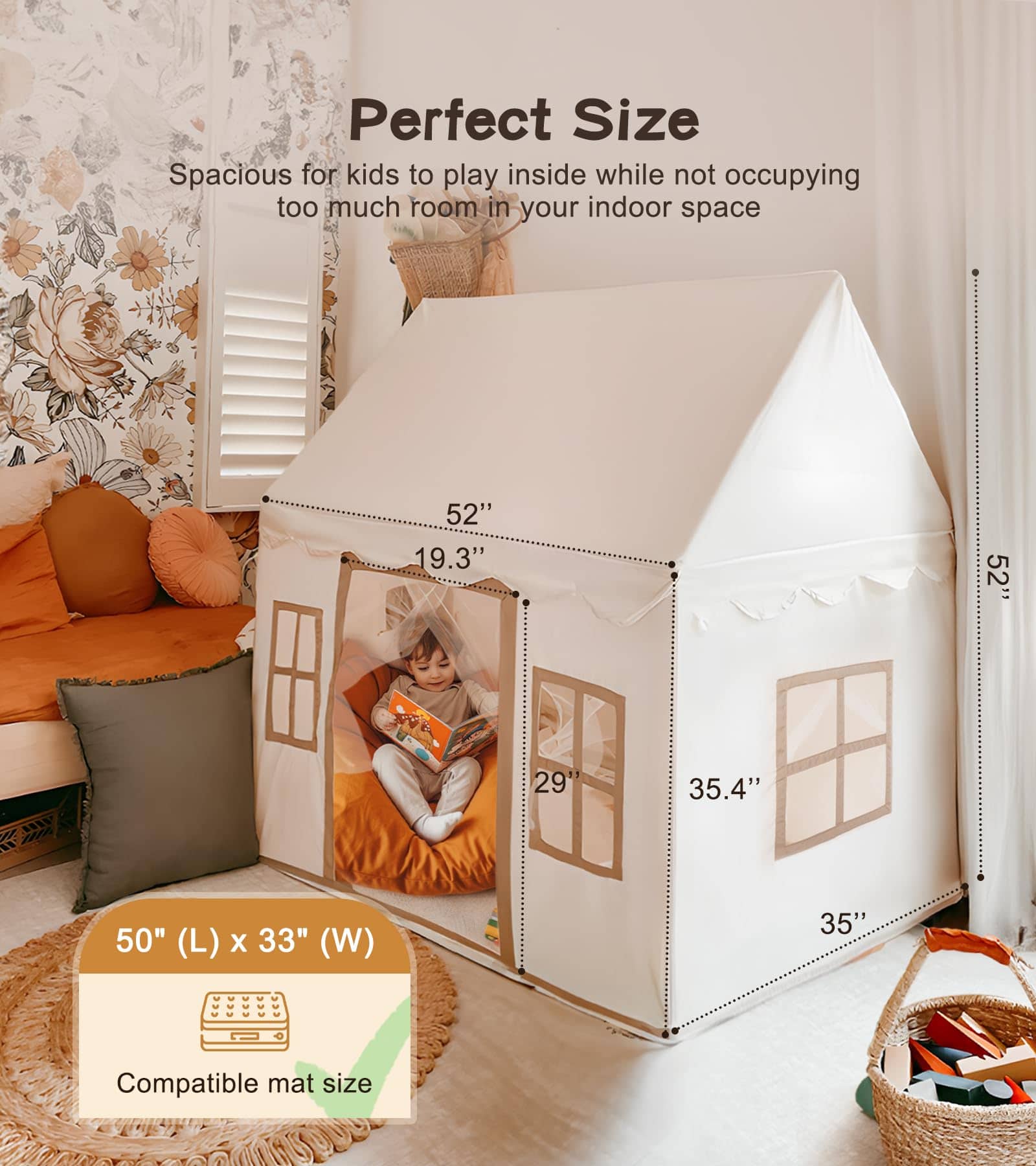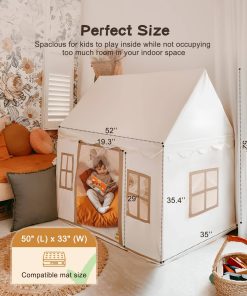 2. ESPACIO GRANDE PARA NIÑOS: Libera la imaginación de tu hijo con nuestra amplia carpa de juego, que mide impresionantes 52 x 35 x 52 pulgadas. Este generoso espacio de juego acomoda cómodamente a dos niños a la vez, ¡e incluso los adultos pueden unirse a la diversión! ¡Es el último refugio para juegos de roles y aventuras de cuentos.