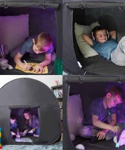 PERFECT FOR LIGHT PLAY Due to the blackout effect the tent is perfect for light play, such as UV lights, projectors, and other light toys. Let your child enjoy his or her fantasies! This size is perfect for two children.