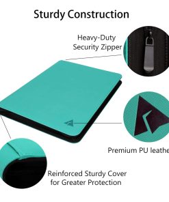 Rieton 16 Pocket 1000+ Pockets Card Binder, Large Ringless Side Loading Pockets Trading Card Album Folder for TCG – Cian. Capacidad máxima – 16 bolsillos dobles por página, 32 páginas en total (NO CLIPS/páginas sueltas) que contienen un total de 1024 tarjetas de intercambio. Con una capa ligera acolchada incorporada en cada página, previniendo que tus colecciones se rayen y abollen manteniéndolas en estado óptimo. Construcción premium – Cierre de calidad mantiene las tarjetas protegidas e intactas cuando no están en uso. Cubiertas delanteras y traseras acolchadas y extra rígidas hechas de material antideslizante y resistente al agua. Páginas de primera calidad – Bolsillos de doble cara con respaldo negro de baja fricción, creando una separación entre los bolsillos delanteros y traseros, así como brindando a las tarjetas un aspecto clásico enmarcado. Carga lateral – Bolsillos de carga lateral diseñados para mantener las tarjetas de intercambio seguras en su lugar. El cierre de cremallera de alta calidad mantiene la carpeta de tarjetas de intercambio cerrada cuando no está en uso. No más derrames de tarjetas. Materiales seguros – Hechos de material libre de ácido y seguro para el archivo, no PVC. Garantía de 12 meses a partir de la fecha de compra. Tamaño de bolsillo 3.7×2.7 pulgadas, compatible con todas las tarjetas como Magic the Gathering, YuGiOh!, Baloncesto, Pokemon, Béisbol, Fútbol, Star Wars X-Wing, Force Of Will, Cardfight Vanguard, WoW, Panini XL & Match, Dragon Ball Z y muchos más. Compatible con todas las fundas de protector de tarjetas estándar.