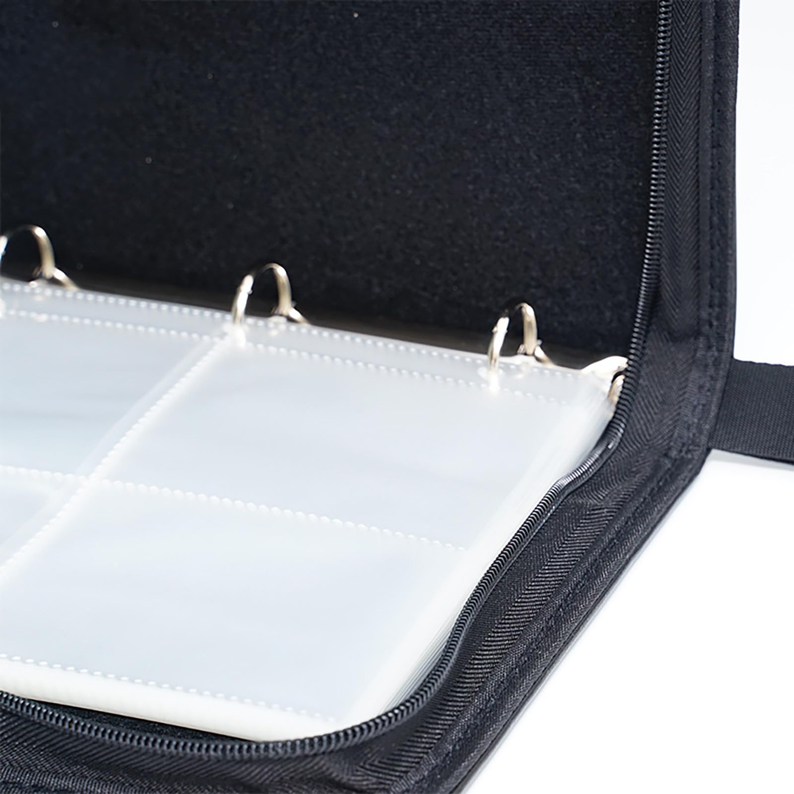 4. Diseño portátil: La cremallera de calidad sella la carpeta para mantener las cartas intactas; un diseño de muñequera adicional hace que sea fácil de transportar. La carpeta de cartas utiliza un resistente interruptor de 3 anillos extraíble dentro del portafolios de cartas que es conveniente para que agregues o quites las fundas.