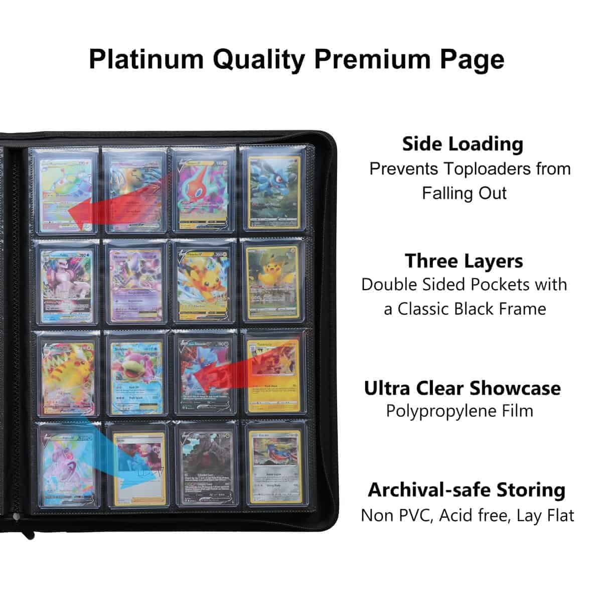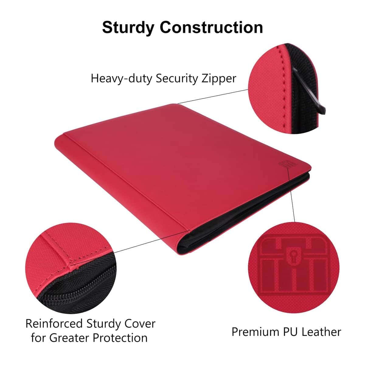 La carpeta Rieton 16 Pocket Toploader tiene una capacidad de 640 toploaders, con 16 bolsillos por página. Cuenta con una capa acolchada ligera en cada página para proteger tus objetos de colección. La calidad de la cremallera mantiene las tarjetas protegidas e intactas cuando no están en uso. Las cubiertas delanteras y traseras acolchadas y extra rígidas están hechas de un material antideslizante y resistente al agua. Los bolsillos de carga lateral mantienen los toploaders de forma segura en su lugar. Hecha de material libre de ácidos no PVC, seguro para archivos. Compatible con todas las cartas en toploaders de 3 x 4» como Magic the Gathering, YuGiOh!, Basketball, Pokemon, Baseball, Soccer, Football, Star Wars X-Wing, Force Of Will, Cardfight Vanguard, WoW, Panini XL & Match, Dragon Ball Z, y muchos más. Incluye una garantía de 12 meses a partir de la fecha de compra.