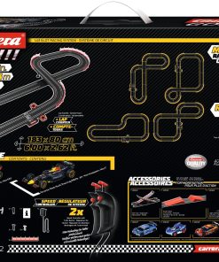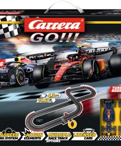 ¡Inicia tus motores y prepárate para experimentar la emoción de las carreras de autos a escala con el Set de Pista de Carreras de Autos a Escala Carrera GO! Flying Lap! Las carreras de autos a escala te brindan la apariencia, sensación y emoción de la conducción de autos reales pero con el control en tus manos detrás del volante. ¡Pronto tu corazón latirá rápido mientras aceleras en las rectas o derrapas en una curva cerrada para colarte en el primer lugar y reclamar la bandera a cuadros antes que tu competencia! ¡Toda esta acción puede tener lugar en la comodidad de tu propio hogar! La pista de carreras de autos a escala Carrera GO! Flying Lap prepara el escenario para un enfrentamiento rápido entre un Ferrari SF-23 y un Red Bull Racing RB19. Con estos dos autos de carrera populares, tú como conductor tienes la clave de quién obtiene la bandera a cuadros en esta emocionante carrera cara a cara! ¡Corre en un circuito que se extiende por más de 14 pies y presenta rectas y curvas que proporcionarán acción emocionante por toda la pista! ¡Solo el conductor con las mejores habilidades puede dominar la pista y reclamar la victoria al final! Se garantizan horas de acción y diversión. Con una variedad de accesorios disponibles, sets de expansión de pista y una amplia selección de autos adicionales, este sistema completo de pista de autos a escala puede expandirse y modificarse para posibilidades interminables y más carreras increíbles. El set completo de autos a escala incluye un transformador, pista de conexión, 2 controladores de velocidad, 2 autos a escala 1:43, contador de vueltas, rectas, curvas y soportes. Los dos autos incluidos en este set son un Ferrari SF-23, C. Sainz, No.55 y un Red Bull Racing RB19, M. Verstappen, No.1.