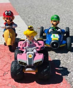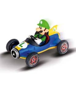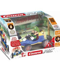 Gracias a la licencia de Nintendo Luigi, en su auto Mach 8 en diseño azul y amarillo, parece como si se hubiera acercado directamente desde las pistas de carreras en Mario Kart 8 a ti en tu habitación. Además de la apariencia auténtica, el auto RC a escala 1:18 también impresiona con su tecnología de función completa y diferencial. Los movimientos dinámicos de Luigi aseguran aún más diversión. Con una velocidad máxima de hasta 9 km / h (5.6 mph), se desliza por la habitación de los niños y se posiciona casualmente en la dirección del viaje. Cuando Luigi llega a tu lugar en su auto teledirigido, puedes partir hacia nuevas aventuras con él de inmediato. El vehículo mide 25.5 cm (10 in) de largo y se puede conducir durante hasta 20 minutos. Luego, el héroe de los videojuegos se permite un descanso de unos 50 minutos mientras se recarga la batería y luego puede seguir adelante. ¿Te gustaría tener un par de emocionantes duelos con tus amigos? ¡No hay problema! Con la tecnología de 2.4 GHz, es posible que compitan hasta 16 vehículos al mismo tiempo. ¿Es suficiente para que tú y Luigi logren la victoria?
