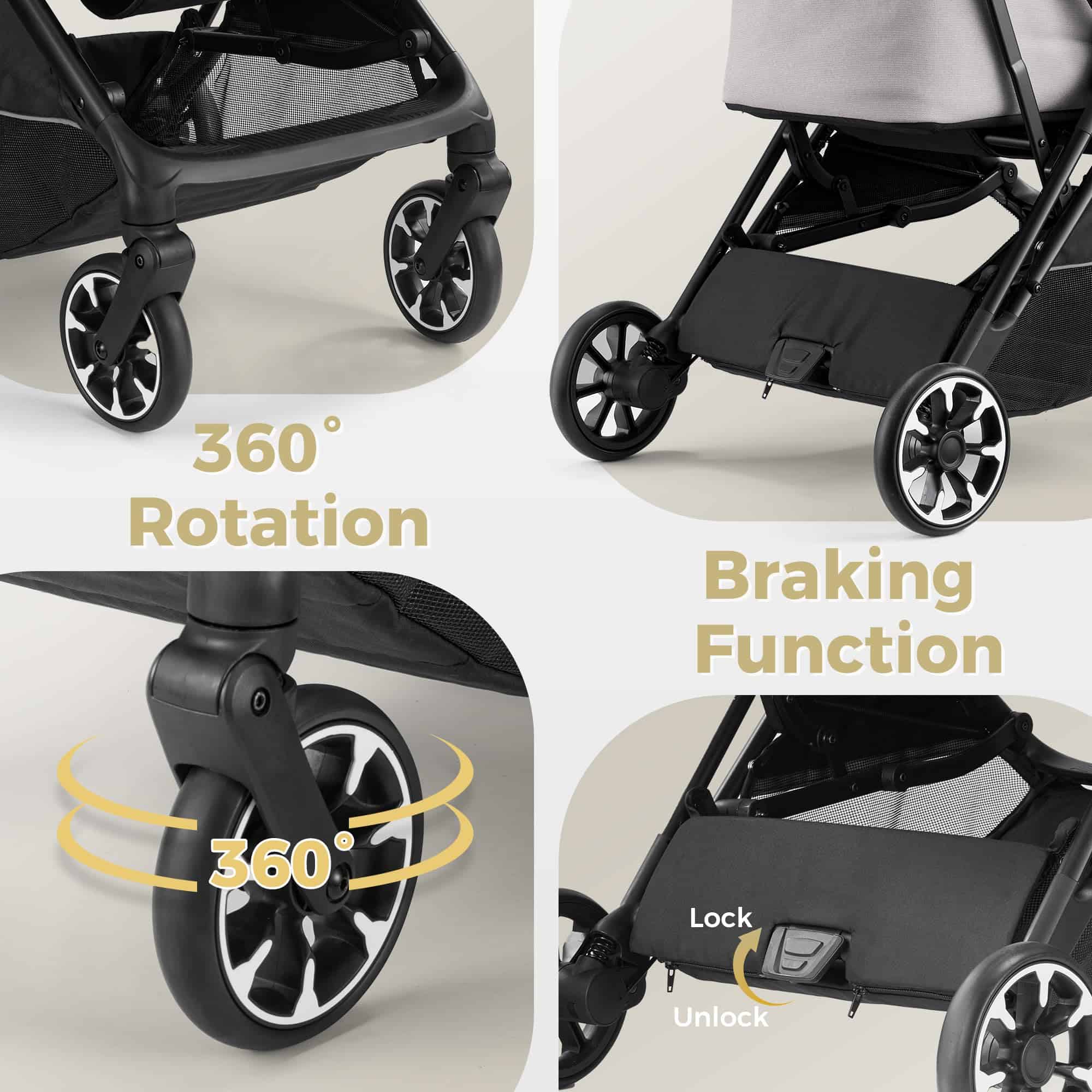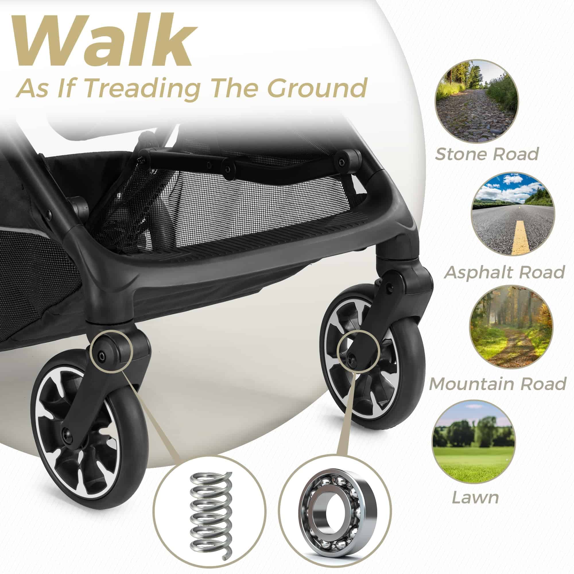 3. Estable y cómoda: la carriola está equipada con 4 ruedas. Las 2 ruedas delanteras tienen giro de 360 grados, lo que facilita controlar la dirección mientras se desplaza hacia adelante. Las ruedas traseras tienen frenos, que detienen el carro de perros cuando se pisan los frenos. Las 4 ruedas tienen resortes en su interior, lo que minimiza las vibraciones causadas al andar en caminos desiguales y evita que las mascotas se asusten.