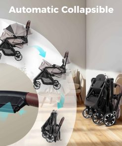 4. Plegado con un botón: como el portador de la carriola no es removible, no es necesario quitarlo para plegarla. Solo presione el botón en el mango y presiónelo hacia abajo suavemente, la carriola se plegará. La carriola plegada no se desarmará, por lo que se puede transportar fácilmente en el maletero del automóvil o en un avión.