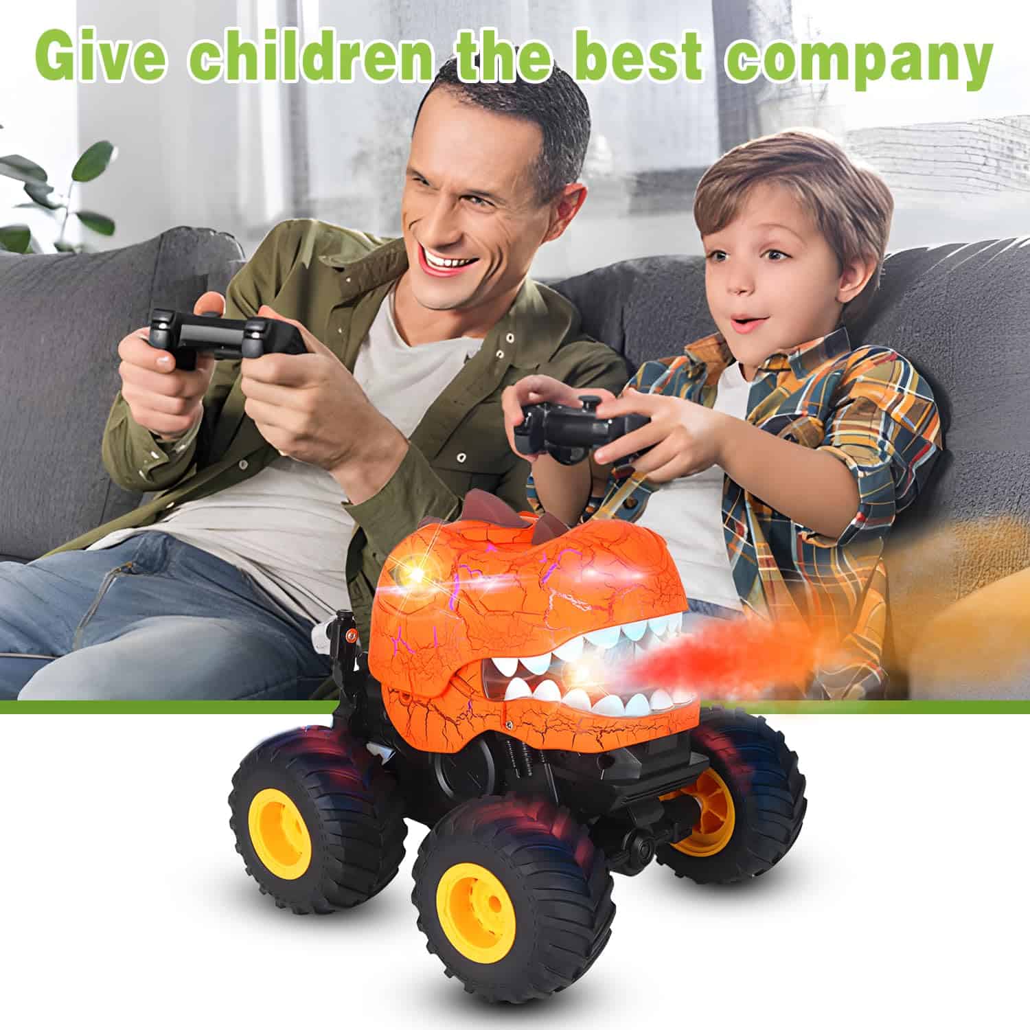 3. ¡Juega Juntos, Diversión sin Fin! Este Carro Dinosaurio Controlado a Distancia con 2.4GHz. Admite varios jugadores al mismo tiempo y más de 20 metros de distancia de control. Batería de iones de litio recargable de 1200 mAh que proporciona una experiencia duradera. ¡Disfruta de tu tiempo feliz sin fin con tu familia y amigos!