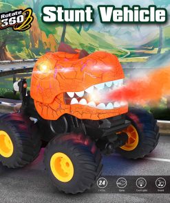 1. Carro de Control Remoto Dinosaurio con Acrobacias: Los niños pueden controlar fácilmente el carro de control remoto para realizar giros de 360 grados en su lugar, movimientos verticales hacia adelante y otras acrobacias, no solo adelante/atrás ni girar derecha/ izquierda. El cuerpo flexible del carro se balancea con cada movimiento, haciendo la experiencia de manejo más dinámica y atractiva. ¡Observa cómo baila y gira con una agilidad realista que cautivará y deleitará!