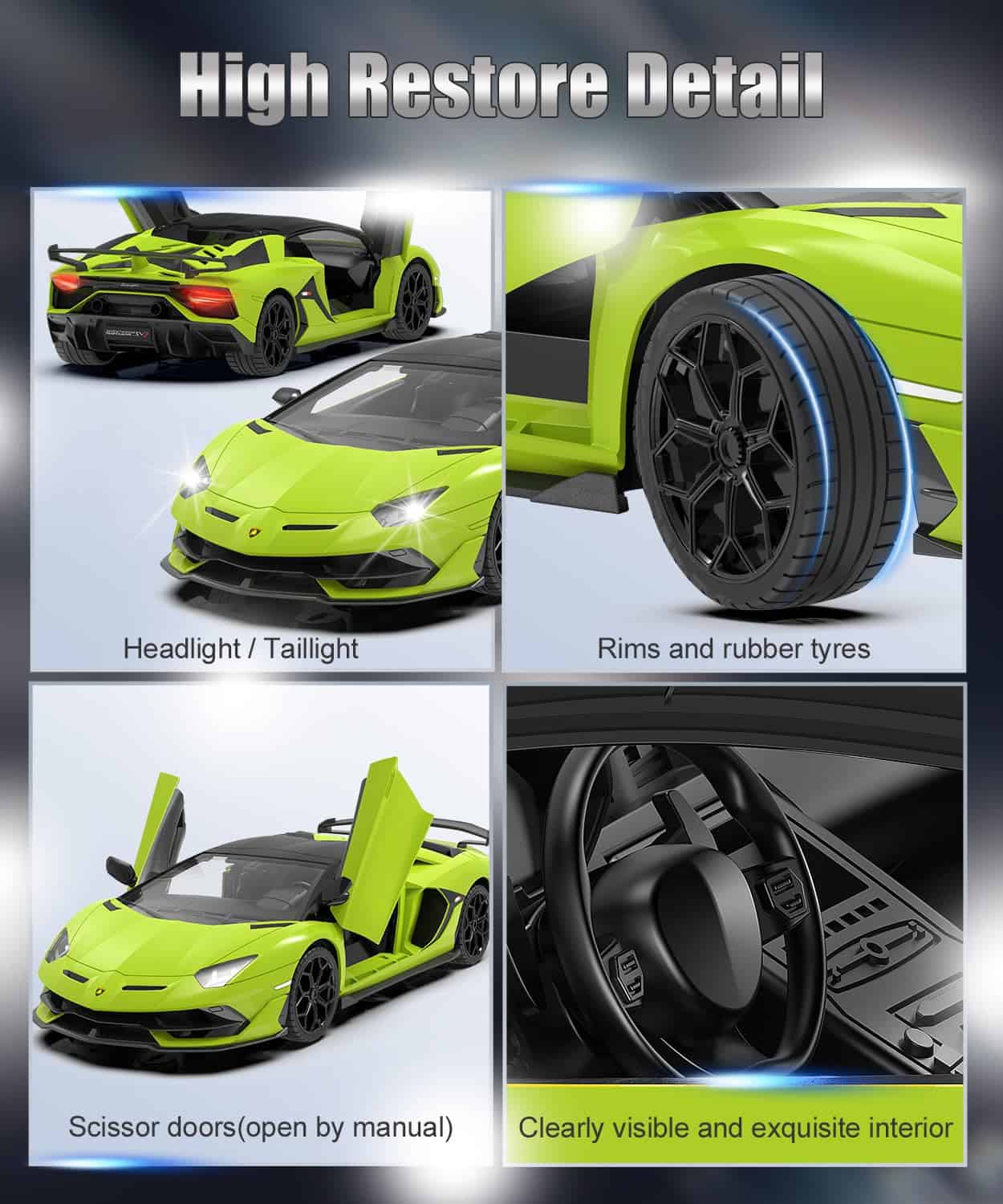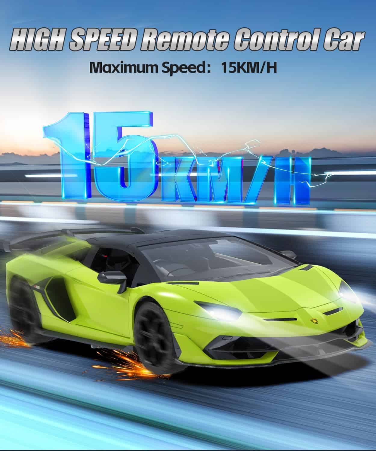 Carro de Control Remoto Lamborghini AEROQUEST, Modelo Oficial con Licencia 1:14 Lamborghini RC Car 7.4V 500mAh, Coche de Juguete Rápido a 15 km/h para Adultos Niños Niñas, Idea de Regalo de Cumpleaños, Verde. Este coche de control remoto con licencia AEROQUEST a escala 1:14 te brinda una verdadera réplica del Lamborghini Aventador SVJ Roadster. Como amante de los supercoches, Lamborghini será el punto culminante de toda tu colección con su diseño genial, sus líneas soberbias y su impresionante rendimiento. Este coche teledirigido no solo representa velocidad y lujo, sino que también es una obra de arte digna de colección que puede aportar confianza y encanto ilimitados a los niños. Estos coches teledirigidos son regalos maravillosos para los niños. Disfruta de la velocidad y la emoción del coche deportivo superlimitado Lamborghini Aventador SVJ Roadster, que es un supercoche limitado de Lamborghini. El AEROQUEST 1:14 Lamborghini RC Car simula un motor realmente potente. Propulsado por un motor fuerte, el coche teledirigido puede alcanzar una velocidad de hasta 15KM/H, brindándote una emocionante experiencia de conducción. Al mismo tiempo, estamos equipados con una batería recargable de 7.4V 500mAh para que puedas disfrutar de la diversión de las carreras de velocidad con tus hijos. El control remoto potente de 2.4Ghz es una de las características importantes de este coche teledirigido Lamborghini, ya que brinda un rango de control estable y más amplio para el juego. Cada coche y control remoto tienen emparejamientos de frecuencia únicos, lo que te permite disfrutar de la diversión de las carreras con tus amigos. La distancia máxima del control remoto es de 100 pies y el control remoto requiere 2 pilas AA (incluidas). El coche teledirigido Lamborghini cuenta con un estilo auténtico tanto en el interior como en el exterior. Los faros y las luces traseras LED funcionarán mientras el coche teledirigido se mueve hacia adelante y retrocede. Simulando el diseño de puerta tijera de un verdadero coche deportivo, dos puertas se pueden abrir manualmente. El supercoche Lamborghini se destaca por su alta precisión y atención al detalle, desde las sutiles líneas de la carrocería hasta el lujoso interior y las luces traseras, que te harán sentir como si estuvieras conduciendo el coche real. Este coche teledirigido Lamborghini no es solo un juguete, sino también un artículo de colección que se puede exhibir en una estantería. Es el regalo perfecto para Navidad, Día del Niño, cumpleaños, Año Nuevo o como recompensa. Es ideal para cualquiera que ame los coches teledirigidos y sin duda proporcionará horas de diversión y emoción. Ponte en contacto con nuestro equipo de posventa a tiempo cuando te enfrentes a cualquier problema con el coche, y definitivamente te daremos una solución satisfactoria.