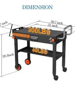 3. Todas las comodidades en uno. Incluye un contenedor de almacenamiento plegable, tira magnética para herramientas, soporte para toallas de papel, 2 ruedas giratorias + 2 ruedas con bloqueo (para movilidad suave), ganchos para herramientas. Mantente organizado y desplázate sin esfuerzo sobre hierba, grava o terreno irregular.