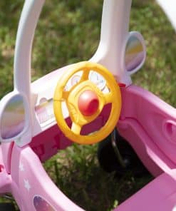 Simplemente adorable, el Coupe Unicornio proporciona diversión duradera para el pequeño aventurero. Un respaldo alto en el asiento, cuerno en funcionamiento, interruptor de encendido, amplio espacio de almacenamiento trasero y licencia de conducir son todo lo necesario para el juego de simulación. Ambas puertas se abren y cierran con un seguro positivo, lo que facilita y garantiza la seguridad del niño al subir y bajar. El Coupe Unicornio fomenta el juego activo, el desarrollo de habilidades motoras y la imaginación.