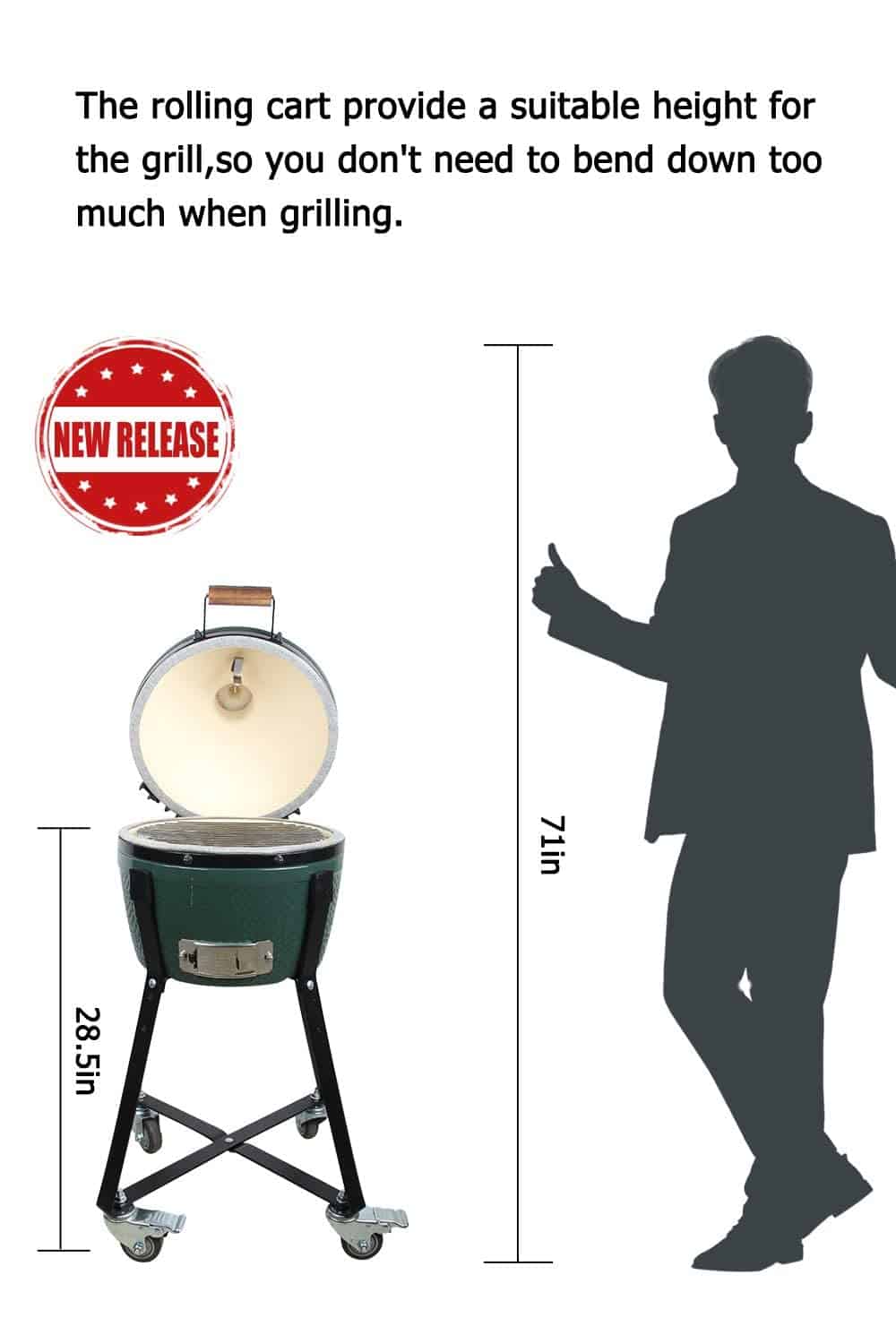 Nuestro Carro Rodante para la parrilla Minimax Big Green Egg está diseñado para elevar su parrilla a una altura cómoda para cocinar y permitir una fácil movilidad. Ya no necesitará una mesa voluminosa, ya que este carro facilita el movimiento de la parrilla con facilidad. Las ruedas grandes de 3 pulgadas con bloqueo aseguran un paseo suave sin sacudidas y están hechas de uretano para una rodadura suave. Este carro ofrece calidad premium a un precio asequible, siendo la mitad del precio del nido de la marca BGE pero con la misma resistencia y durabilidad gracias a su fabricación en acero recubierto de polvo resistente a la corrosión. Además, es fácil de armar gracias a las instrucciones incluidas. Compatible con la parrilla Minimax Big Green Egg y Kamado Joe Jr, asegúrese de tener en cuenta el tamaño antes de la compra. ¡Con este carro rodante, su experiencia de cocinar a la parrilla será más conveniente y eficiente!