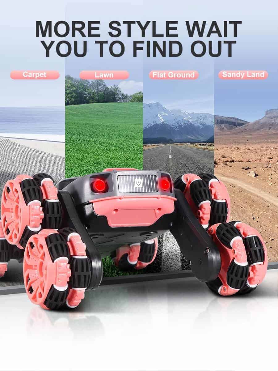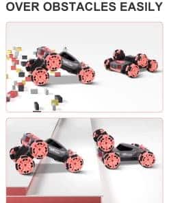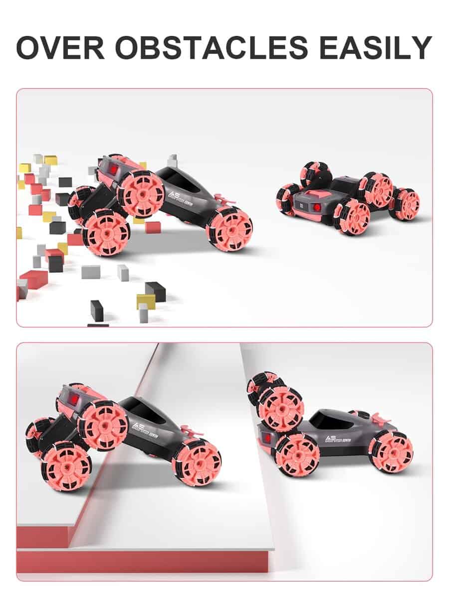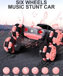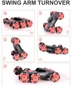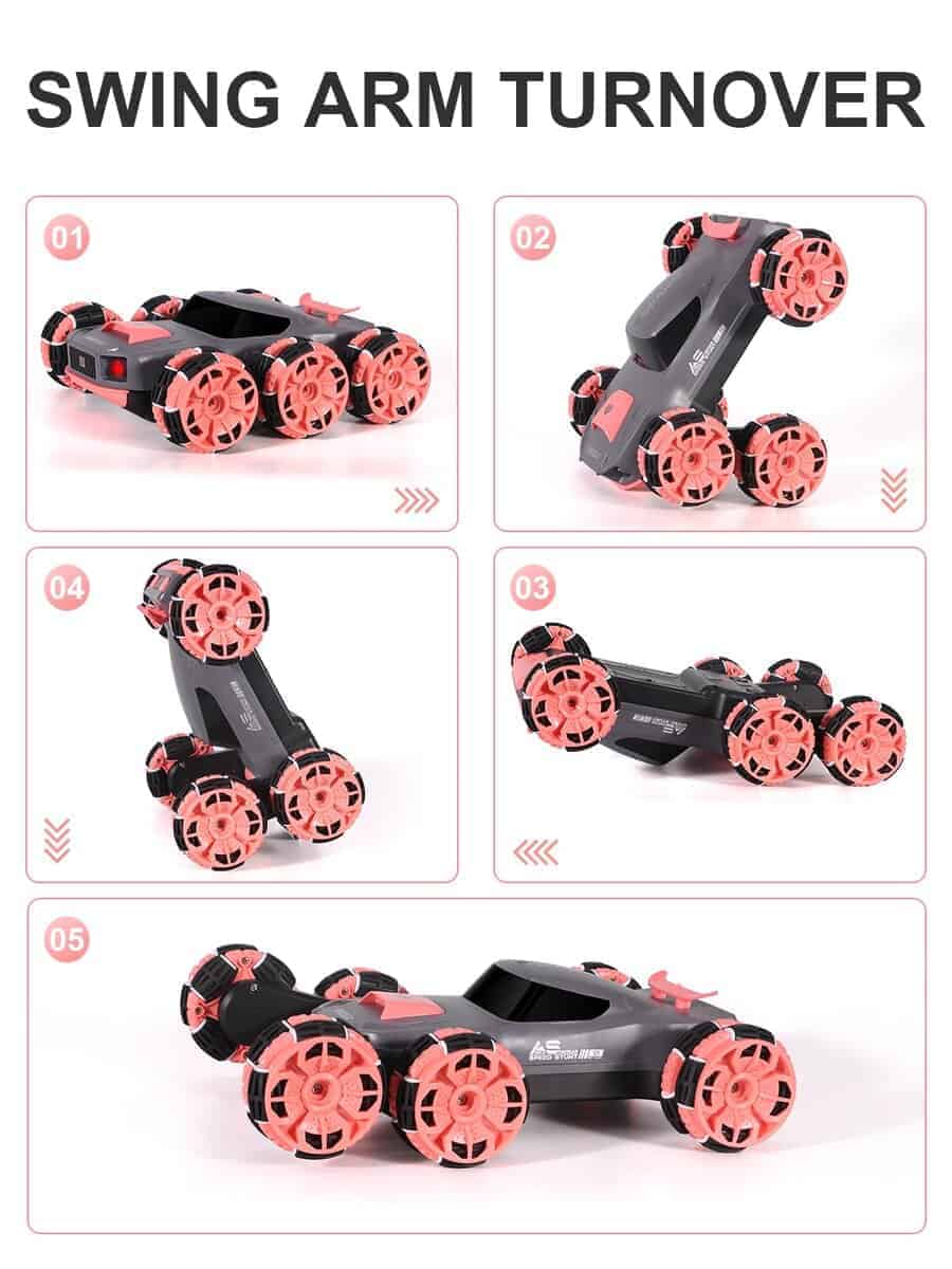 1. Coche de acrobacias de 6 ruedas: El diseño único puede realizar carreras, adelante, atrás, deriva de rotación de 360 grados e incluso balancear el brazo hacia adelante o hacia atrás. Compite con amigos, haz deriva, permite a tus hijos experimentar locas acrobacias todoterreno, brindándoles diversión interminable.