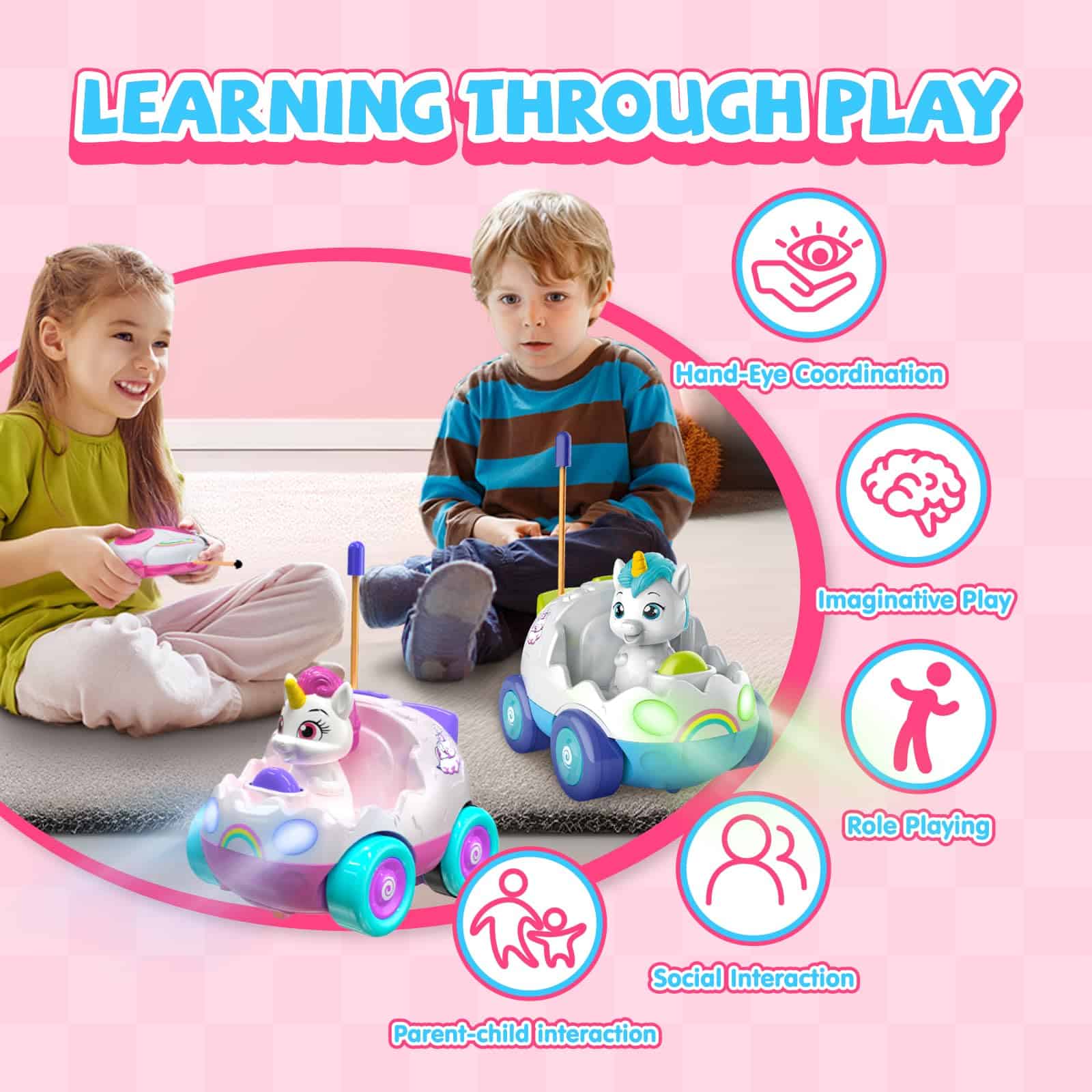 Carros Rc Unicornio Azul AEROQUEST para niños pequeños de 1-3 años. Este juguete divertido y colorido es perfecto para los más pequeños. Con su diseño de unicornio arcoíris, tus hijos se divertirán horas controlando este carro a control remoto.