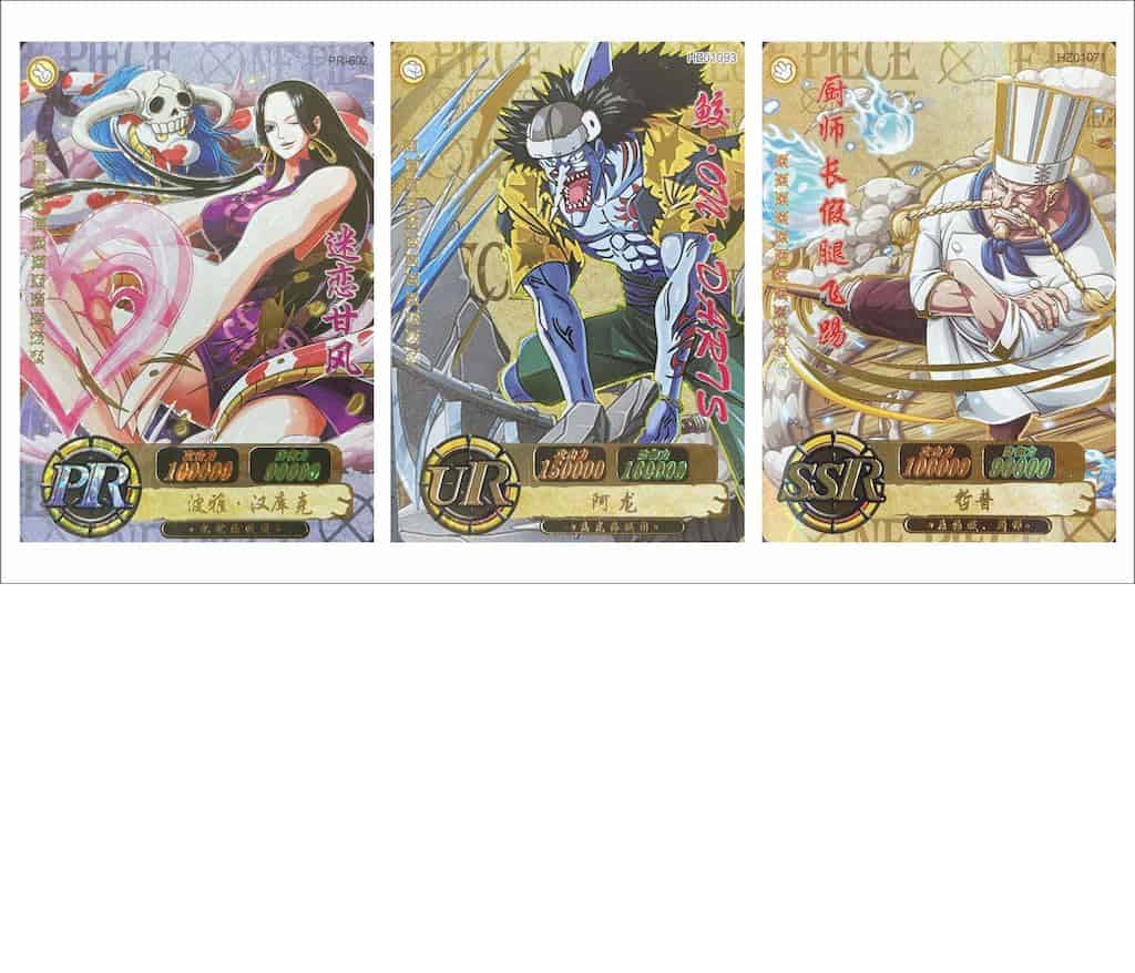 ¡Sumérgete en el cautivador mundo de One Piece con nuestra colección de cartas de anime! Desata el poder de la Gran Línea mientras te embarcas en una emocionante aventura junto a Monkey D. Luffy y su tripulación. Cada carta da vida a personajes icónicos con impresionantes ilustraciones y detalles vívidos, convirtiéndola en un imprescindible para cualquier fan de la serie. Ya seas un coleccionista experimentado o un recién llegado al mundo de las cartas de intercambio, la colección de One Piece ofrece una amplia variedad de personajes, momentos y habilidades para descubrir y apreciar. Desde épicas batallas hasta conmovedoras amistades, estas cartas encapsulan la esencia de One Piece, permitiéndote revivir la emoción y la emoción de la serie en la palma de tu mano. Eleva tu colección y muestra tu pasión por este legendario anime con nuestras exquisitas cartas de One Piece. Únete a la aventura y deja que las cartas te transporten a los mares altos de la imaginación!