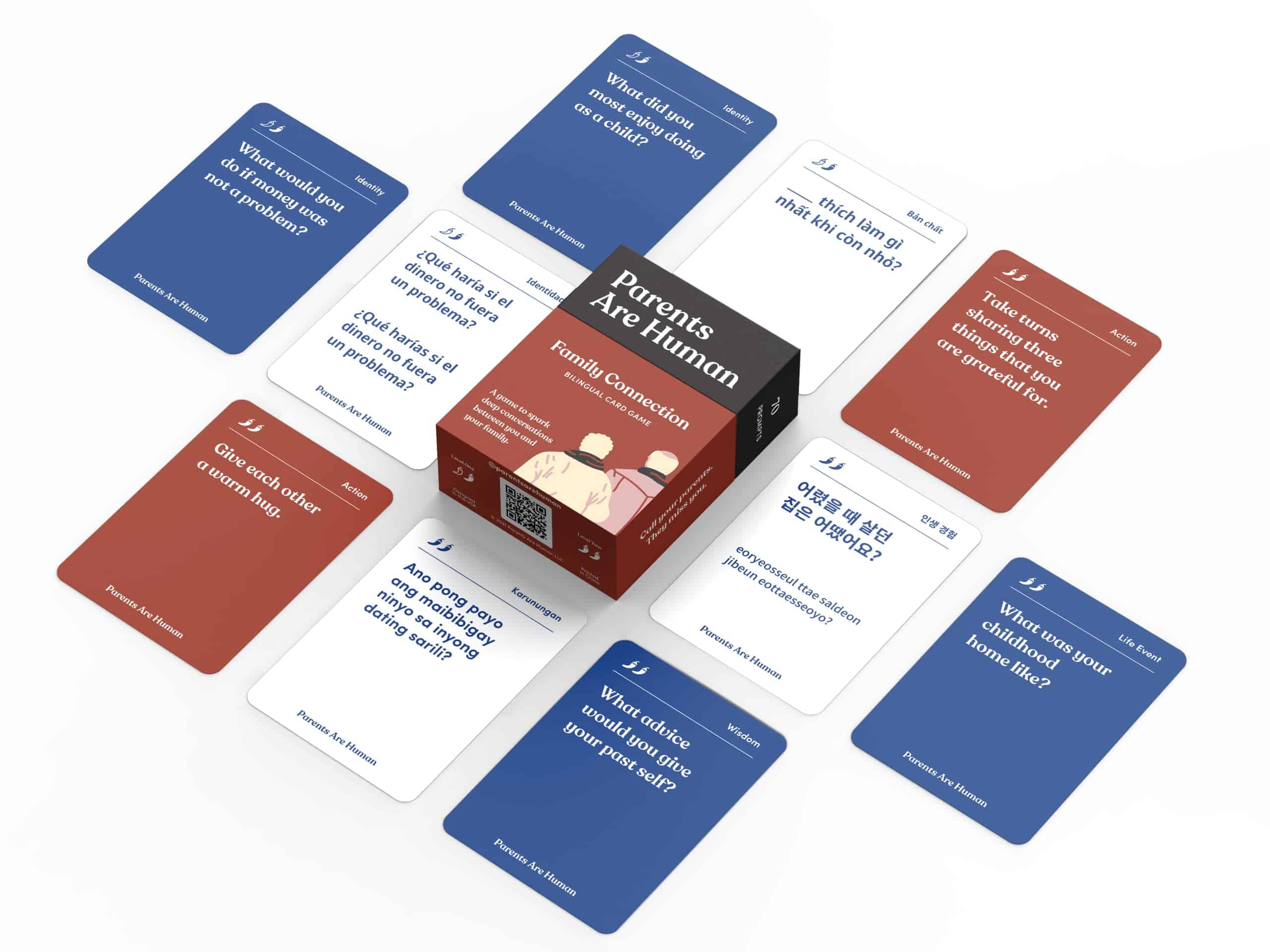 Descubre las joyas ocultas de la historia familiar y fortalece los lazos que unen a las generaciones con Cartas de Conversación para Padres, un emocionante juego de cartas que promete inyectar tus reuniones familiares con alegría y conexión ilimitadas. Revela la riqueza de tu tapiz familiar mientras emprendes un viaje a través de 70 preguntas estimulantes meticulosamente diseñadas para fomentar conexiones profundas y vulnerabilidad. Cada sesión es un tesoro de historias no contadas y experiencias compartidas, asegurando que los momentos creados resuenen durante años. ¡Únete a la multitud de personas que han desbloqueado nuevas dimensiones de comprensión y felicidad familiar con Cartas de Conversación para Padres! Con una tasa de satisfacción del 98.9% y una abundancia de testimonios conmovedores, este juego trasciende el ámbito de la mera diversión para convertirse en un instrumento poderoso para nutrir relaciones que perduran a través de las generaciones. Sumérgete en la magia de las narrativas y experiencias compartidas, y descubre la profunda alegría de forjar conexiones más profundas con tus seres queridos. ¡Ahora disponible en 15 idiomas! Al unir culturas y generaciones, este juego transforma momentos de interacción en recuerdos atesorados, independientemente de las diferencias lingüísticas. Cada carta cuenta con traducciones, asegurando que cada miembro de la familia pueda participar activamente, fomentando la unidad y la comprensión entre los jugadores. Revitaliza tus noches de juegos ofreciendo un catalizador único para conversaciones significativas y experiencias de unión. Ya sea en una animada reunión familiar o en una íntima conversación con la abuela, nuestro mazo versátil ofrece infinitas oportunidades para risas, alegría y conexión. Con cada pregunta cuidadosamente seleccionada para encender diálogos sinceros, este juego es una adición indispensable a cualquier colección de juegos de mesa y cartas.