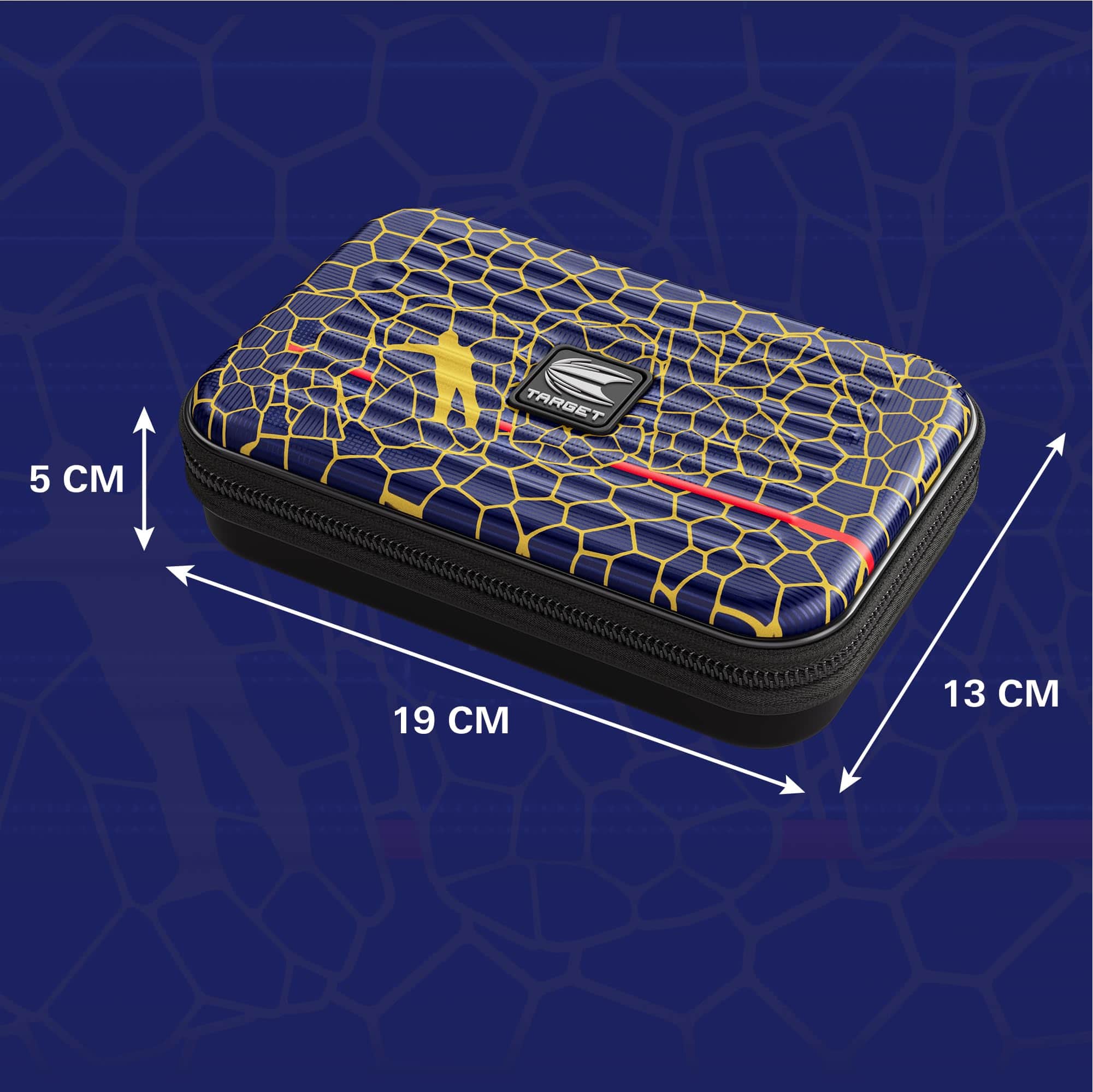 1. CARTERA DE DARDOS JOSH ROCK TAKOMA: Creada en colaboración con Josh Rock, el ganador del Campeonato Holandés de Dardos PDC 2024 y Campeón Mundial Juvenil PDC 2022. La cartera Takoma presenta un diseño llamativo en azul y dorado, incorporando inspiración tomada de sus dardos de Generación 1. 2. ESTUCHE PARA DARDOS Y FLIGHTS PARA 3 DARDOS ENSAMBLADOS COMPLETAMENTE: La correa elástica dentro del estuche de dardos garantiza que se mantengan seguros tres dardos ensamblados completamente, minimizando cualquier movimiento durante el transporte. 3. ALMACENAMIENTO DE BOLSILLO DOBLE CON CREMALLERA: La cartera de almacenamiento de dardos cuenta con una organización eficiente con dos bolsillos con cremallera, ofreciendo espacio dedicado para accesorios de dardos de repuesto como flights, cañas, puntas o una herramienta Swiss Point, haciéndolos fácilmente accesibles durante juegos intensos. 4. INTERIOR FORRADO DE VELVET RESISTENTE A LOS RAYONES: El interior del estuche de dardos está forrado con terciopelo, proporcionando un material suave y resistente a los arañazos para mantener tus dardos en condiciones impecables. Su diseño compacto no solo añade un toque elegante, sino que también se adapta tanto a jugadores de dardos casuales como profesionales. 5. EL PAQUETE CONTIENE: 1x Cartera XL Josh Rock Takoma. Dimensiones: 18cm x 13cm x 5cm (No incluye flights ni dardos).