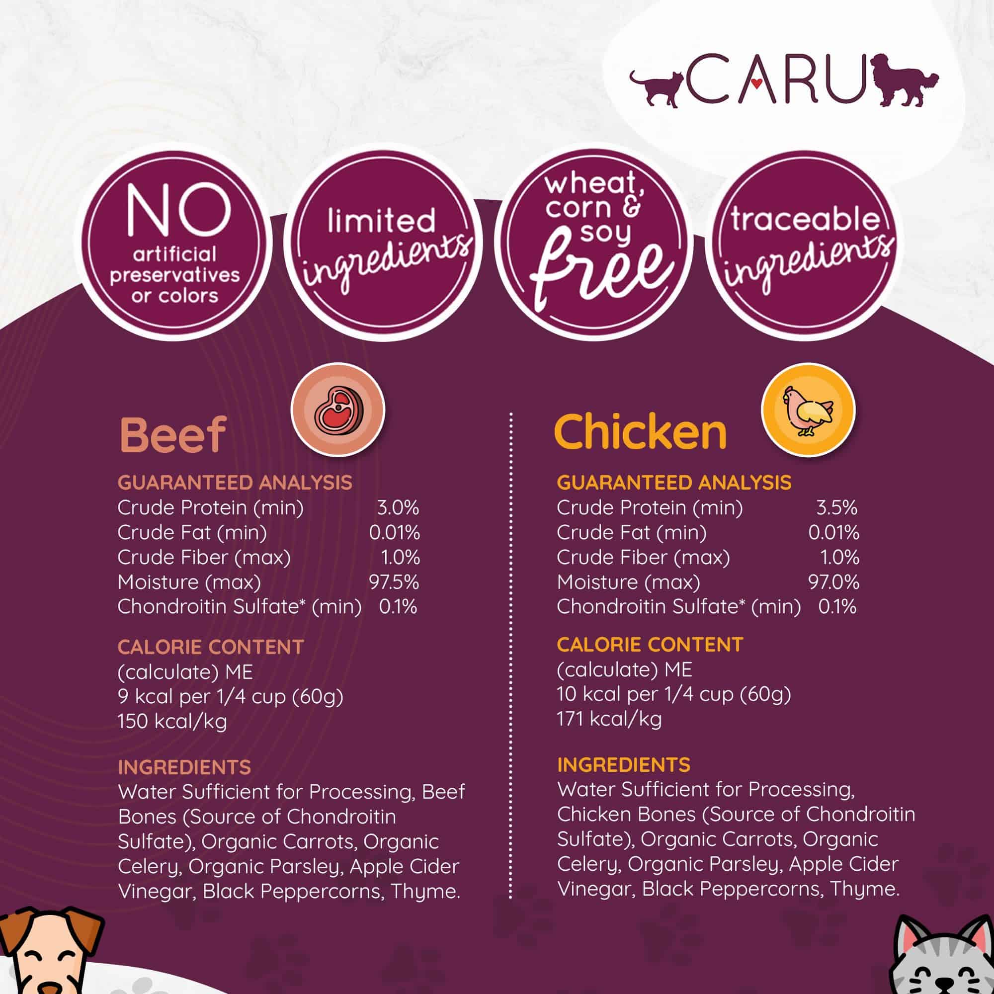 CARU Classics Bone Broths – Variety (Grass Fed Beef, Free Range Chicken) Paquete de 6