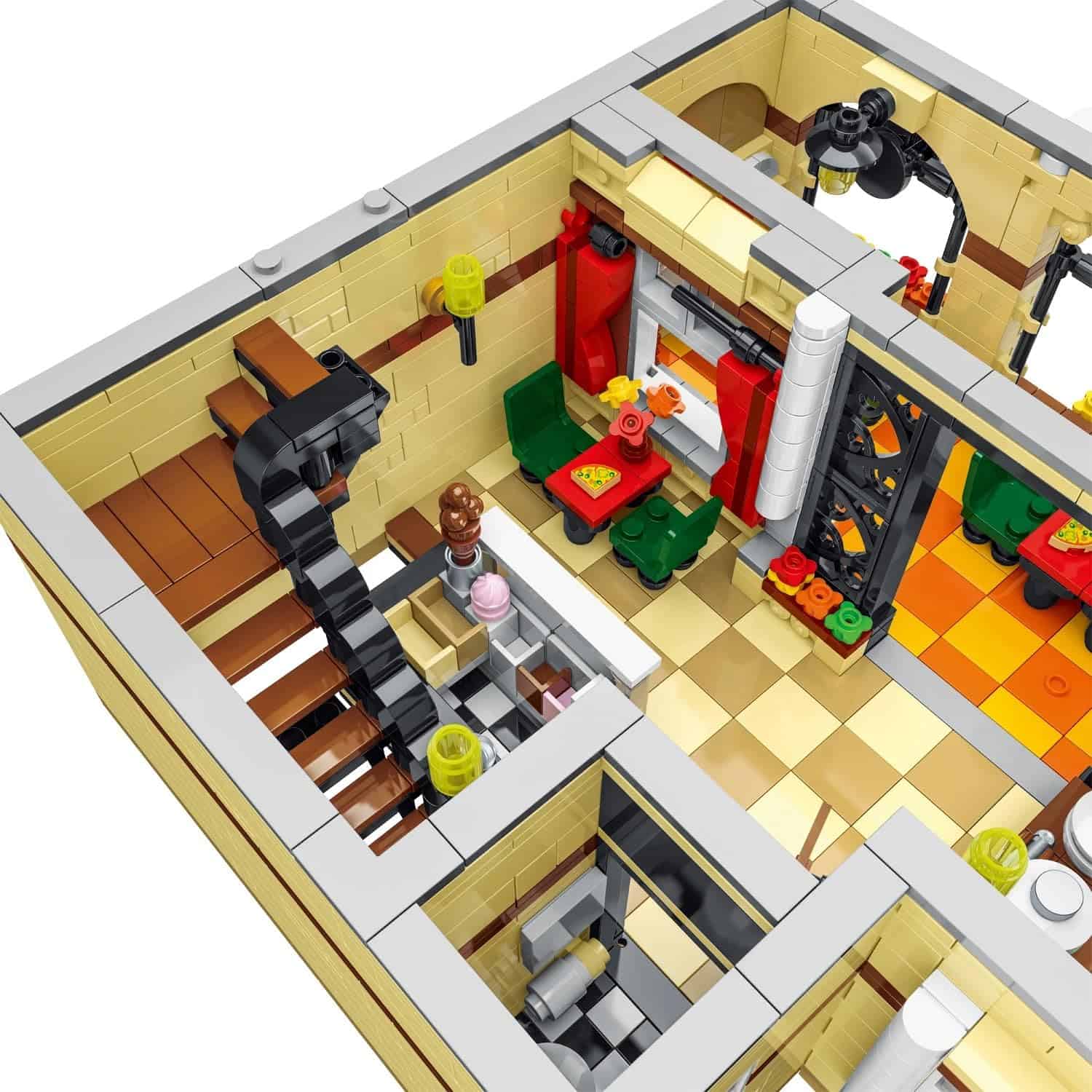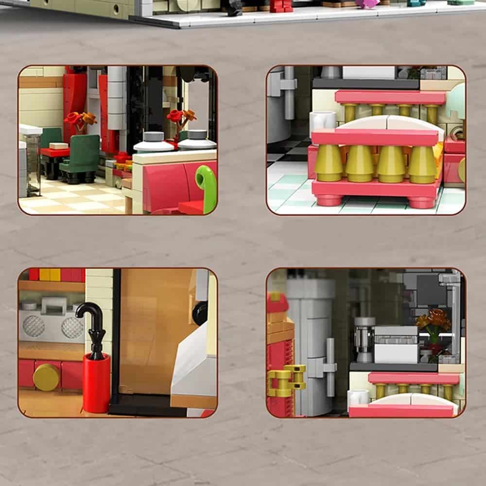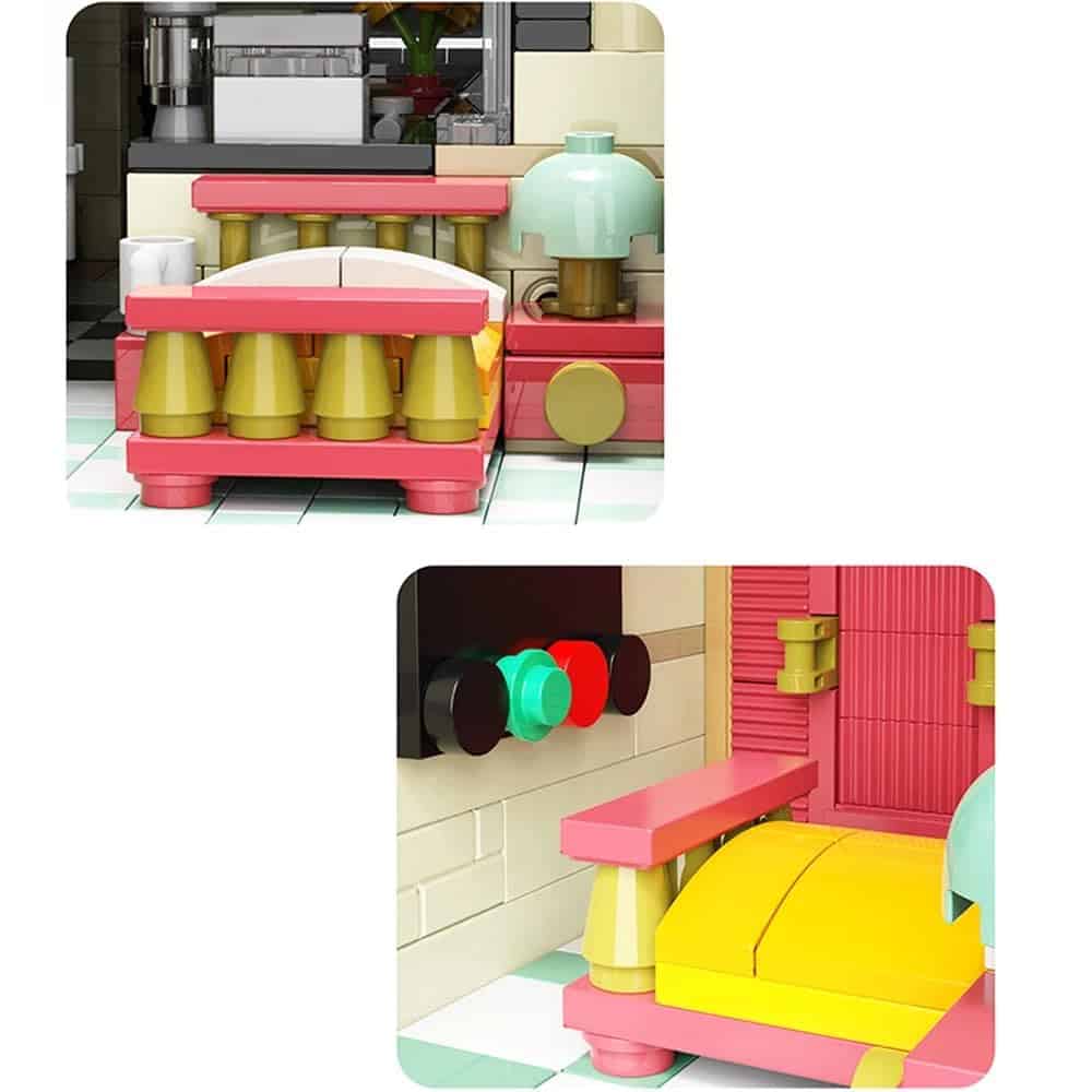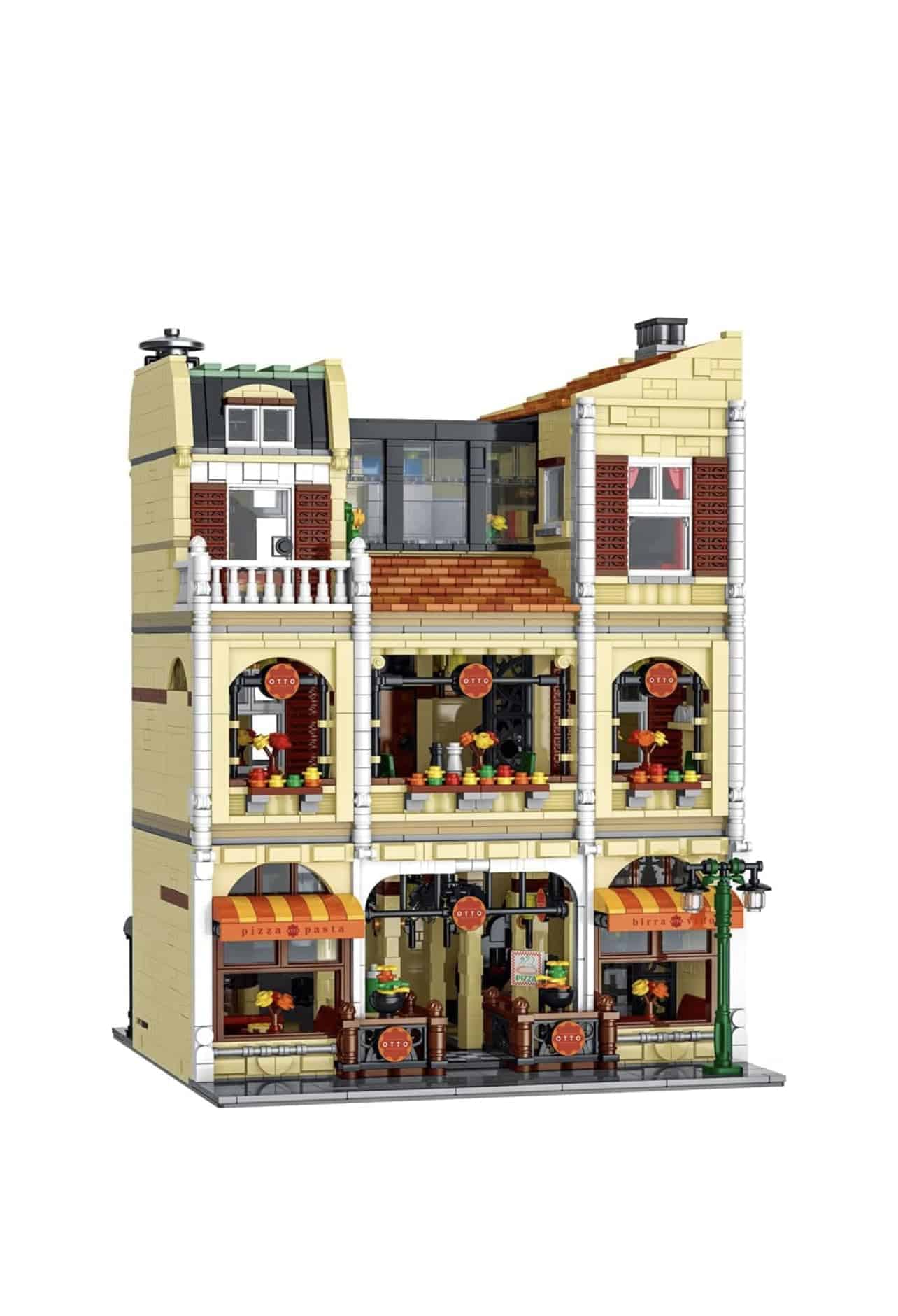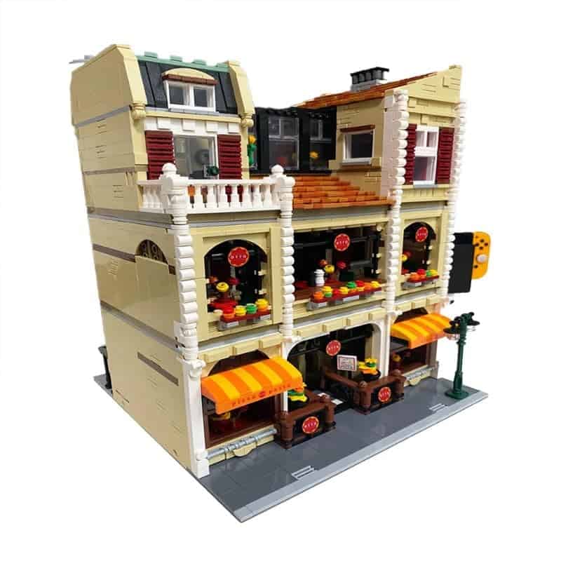 Conjunto de bloques de construcción con las piezas necesarias para construir una pizzería detallada. Contiene 5588 piezas de alta calidad. Compatible con Lego, Cobi, Wange, Sembo y otras marcas importantes de construcción. Ideal para crear ciudades con edificios, carreteras y puentes, o un restaurante y más. Medidas: 27.7 cm de ancho y 36.7 cm de alto. Incluye instrucciones detalladas de montaje.