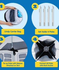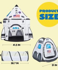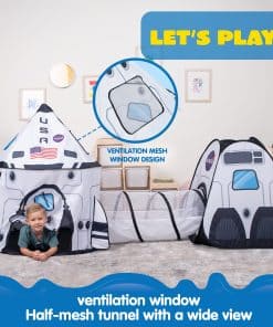 SUPER VALOR. Nuestra casa de juegos y set de túnel presenta una Tienda de Nave Espacial Blanca y el set incluye un Túnel, Tienda de Cubo, instrucciones de montaje y bolso de transporte. Viene también con 4 postes resistentes, anclas de techo y suelo. FÁCIL DE INSTALAR. Fácil y rápido de construir un set de juegos. Plegable para facilitar el almacenamiento. Se puede usar el producto por separado o como un set ya que la tienda y el túnel se pueden conectar mediante el velcro que está unido en la apertura del túnel. DIVERSIÓN INFINITA. Deje que los niños jueguen y se diviertan mientras desarrollan habilidades cognitivas e imaginativas. Permita que los niños jueguen junto con sus adorables mascotas, gatos y perros, ya que también es adecuado para ellos. Se puede utilizar en cualquier espacio interior y exterior. CALIDAD PREMIUM. Nuestro producto es duradero y diseñado para durar mucho tiempo. Hecho con tela suave y gruesa con paredes de malla transpirable para una experiencia de juego cómoda y agradable. SATISFACCIÓN DEL CLIENTE. Brindar una excelente experiencia de compra es nuestra principal prioridad para nuestros clientes. No dude en enviarnos un mensaje a través del contacto de vendedores si los productos no cumplen con sus expectativas. ¡Las celebraciones comienzan en JOYIN!