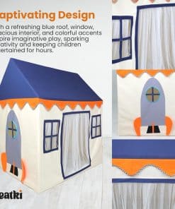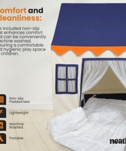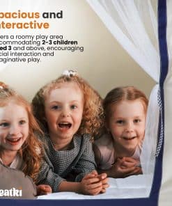 ¡Presentamos nuestra Tienda de Juegos para Niños Segura y Resistente! Hecha de materiales no tóxicos, garantiza un entorno seguro con un diseño resistente para la estabilidad. El diseño cautivador presenta un techo, ventana y fondo azules refrescantes, creando un ambiente lúdico. Con medidas de 49 x 36 x 55 pulgadas, acomoda a 2-3 niños para un juego interactivo. Es conveniente, portátil y ligero, con un peso de 4.7kg, perfecto para uso en interiores y exteriores. Viene con una bolsa de transporte y una alfombra, respaldado por nuestra garantía de 1 año. Crea recuerdos entrañables con nuestra Tienda de Juegos para Niños!
