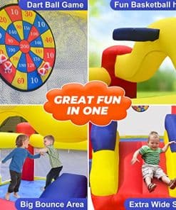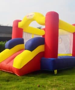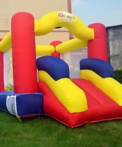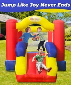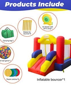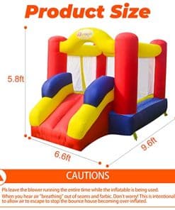 Nota que la casa de rebote para niños al aire libre está hecha de Tarpaulin y Poliéster. Y la casa de rebote inflable con inflador está cosida a través de equipos de costura, que se infla continuamente conectando el inflador de aire. Súper fácil de instalar y desmontar.
