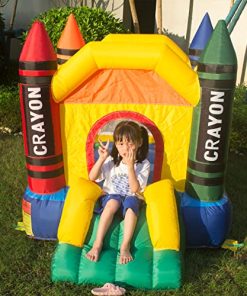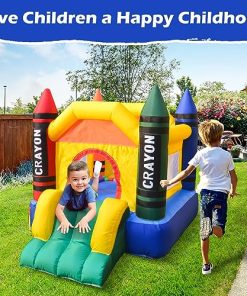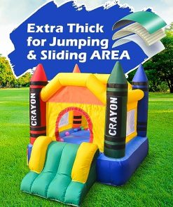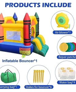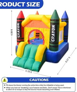 Ten en cuenta que la casa de brinco para niños al aire libre está hecha de Tarpaulin y Poliéster. Y la casa inflable con inflador está cosida a través de maquinaria de costura, que se infla continuamente conectando el inflador de aire. Súper fácil de montar y desmontar.