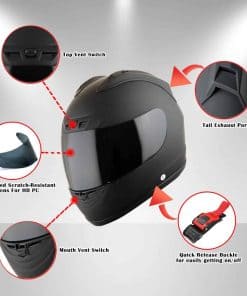 Casco de moto integral 1Storm New JH901 Glossy Red + Una Visera Clara Extra. Casco de moto integral duradero de aleación termoplástica aerodinámica ultraligera. Viene con una visera clara extra para una visión clara. Control de ventilación superior de 3 niveles y canal de ventilación de 5 posiciones para una mayor comodidad. Interior muy acolchado y cómodo, desmontable y lavable para facilitar la limpieza. Hermoso acabado brillante protector UV para una mayor durabilidad. Spoiler de escape aerodinámico de efecto venturi trasero para una mejor aerodinámica. Aprobado por el Departamento de Transporte (DOT) para una mayor seguridad en carretera.