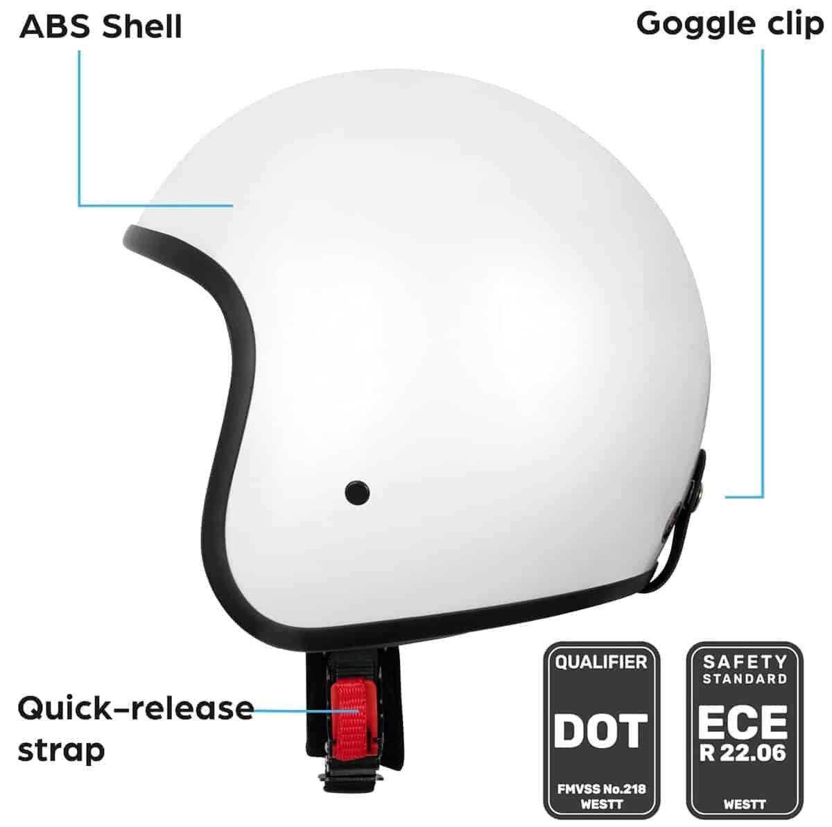 1. Casco de motocicleta Westt Vintage 3/4 certificado profesionalmente según el estándar DOT y FMVSS No. 218 para hombres y mujeres es exactamente lo que necesitas para Moto Deportiva, Cruiser, Aventurero, Motocicleta de Calle, Chopper y mucho más.