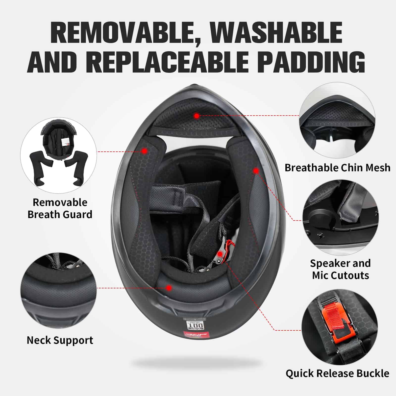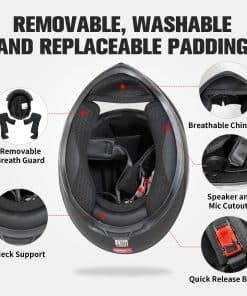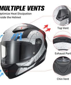 Casco de motocicleta de cara completa JQF Gear WS-607 que cumple o supera el estándar DOT FMVSS 218. La carcasa ligera de ABS y el material EPS de multicapa de nuestros cascos de motocicleta son duraderos y tienen un factor de seguridad alto. Correa de liberación rápida para un uso fácil. El casco cuenta con múltiples ventilaciones para proporcionar una ventilación óptima y disipación de calor, adecuado para cualquier entorno de conducción, verano o invierno. Tenemos dos combinaciones de viseras disponibles 1. Casco con visera clara (Gris Ceniza / Negro Mate B / Negro Mate W / Blanco Brillante / Thor / Cubo). 2. Casco con visera clara y negra (Gris Ceniza B / Negro Mate BB / Negro Mate WB / Blanco Brillante B / Thor B / Cubo B). Nuestros cascos de carreras para adultos incluyen tallas S / M / L / XL / XXL. Por favor, mida la circunferencia de su cabeza y elija la talla correcta según la tabla de tallas. El revestimiento es extraíble, lavable y reemplazable para mayor comodidad y transpirabilidad. Si tiene algún problema con los cascos JQF Gear para adultos, no dude en contactarnos, ¡brindaremos ayuda y solucionaremos en 24 horas!
