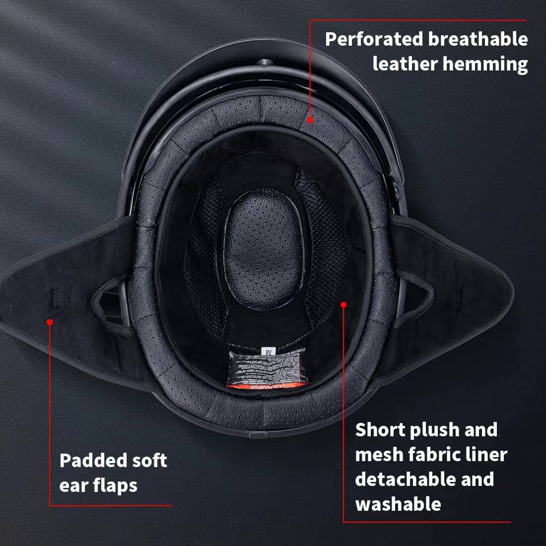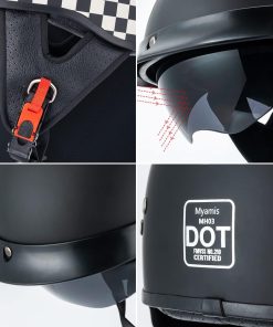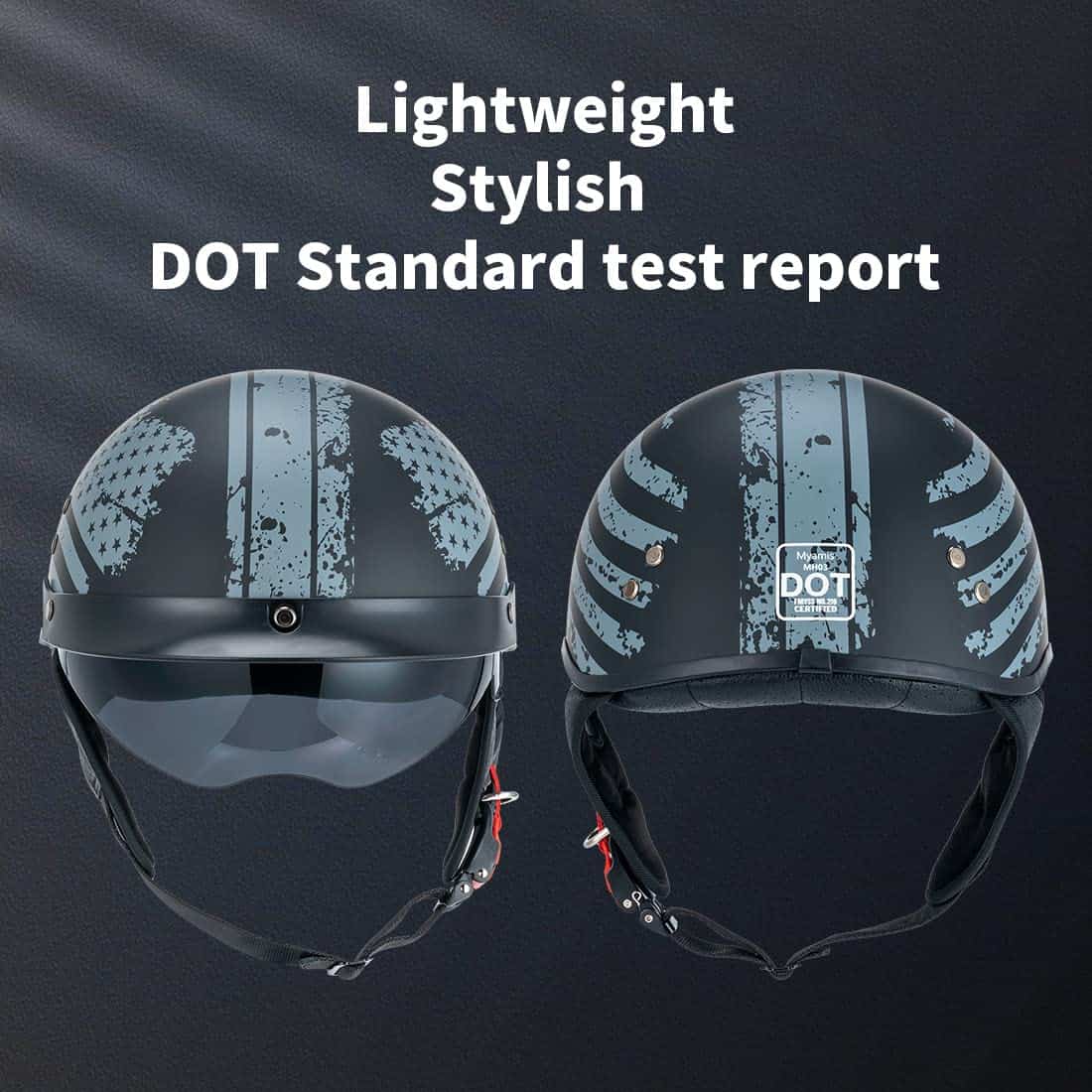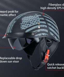 1. Casco de media cara de motocicleta para hombres y mujeres fabricado en fibra de vidrio reforzada, ligero y con resistencia a impactos. Su seguridad, durabilidad, resistencia a la temperatura y al envejecimiento es más fuerte en comparación con el material ABS.