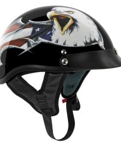 Protégete con estilo con este casco de motocicleta VCAN Cruiser New Patriotic Eagle con gráficos de Águila en USA. La carcasa de resina termoplástica ABS de alta calidad cumple con las normas de seguridad DOT para una protección confiable. Con más de 30 años de experiencia en la fabricación de cascos de motocicleta, puedes estar seguro de la calidad de este casco. Además, el acolchado interior suave garantiza un ajuste cómodo durante tus viajes. La correa de nylon ajustable con doble anillo D asegurado cumple con el Estándar de Seguridad de Vehículos Motorizados Federales (FMVSS) 218, brindándote tranquilidad en la carretera. Este casco de motocicleta VCAN Cruiser es fabricado por uno de los 2 principales fabricantes de cascos en el mundo, por lo que puedes confiar en su excelencia y durabilidad. ¡Protege tu cabeza con este casco de motocicleta de alta calidad mientras muestras tu orgullo patriótico con los gráficos de Águila en USA!