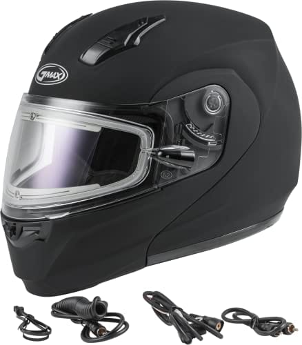 Aprobado por DOT, Hebilla de liberación rápida NUEVA, Casco de aleación de poliéster ligero de solo 4 libras, Interior y almohadillas de mejilla COOLMAX removibles, ajustables y lavables que permiten un ajuste personalizado y una fácil limpieza, Mecanismo de apertura del mentón con una mano diseñado para un uso fácil con cualquier tipo de guantes, Escudo de doble lente UV400 100% protegido con recubrimiento anti-empañamiento, capa exterior anti-arañazos para una visión clara duradera, Sistema de ventilación dual GMAX D.E.V.S en la parte superior y trasera que reduce el empañamiento y la sudoración al permitir que el aire caliente escape, Ventilación ajustable para dirigir el aire hacia arriba en el interior del escudo y reducir el empañamiento, Bolsillos de oído de lujo con compartimentos para altavoces integrados para un mejor ajuste y comodidad, Incluye caja de respiración y cortina de mentón