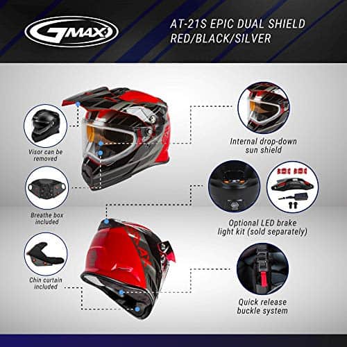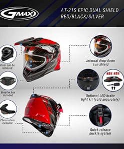 GMAX se complace en presentar el nuevo casco AT-21, diseñado competitivamente desde cero. Aquí está tu próximo casco de aventura touring. El AT-21 está construido a partir de una carcasa de policarbonato ligero que ofrece una protección superior y cumple con las certificaciones de seguridad DOT y ECE. Este casco se fabrica en 3 tamaños de carcasa diferentes de juvenil a adulto, ofreciendo una carcasa ligera para cualquier aventura. Internamente, el casco está equipado con una visera interna, interior Coolmax y bolsillos para altavoces empotrados para sistemas de comunicación. El interior extraíble con tecnología central Coolmax elimina la humedad del cuerpo y está diseñado para mantenerte seco y cómodo durante tu viaje. Disfruta de tu aventura con el nuevo AT-21 de GMAX, aprobado por el DOT y cumple con el estándar FMVSS 218